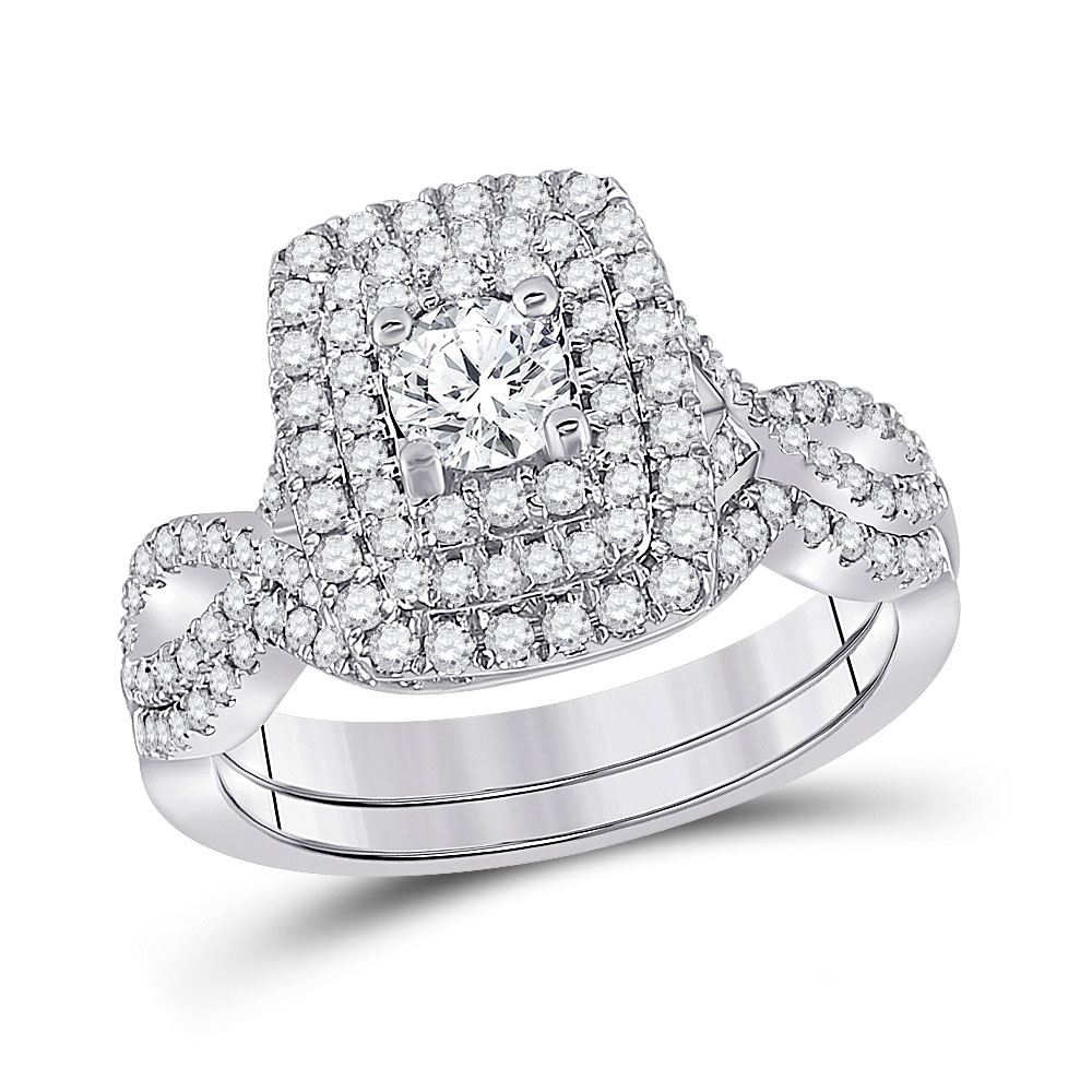 REF-109N5F ---- Round Diamond Bridal Wedding Ring Band Set 1 Cttw 14kt White Gold