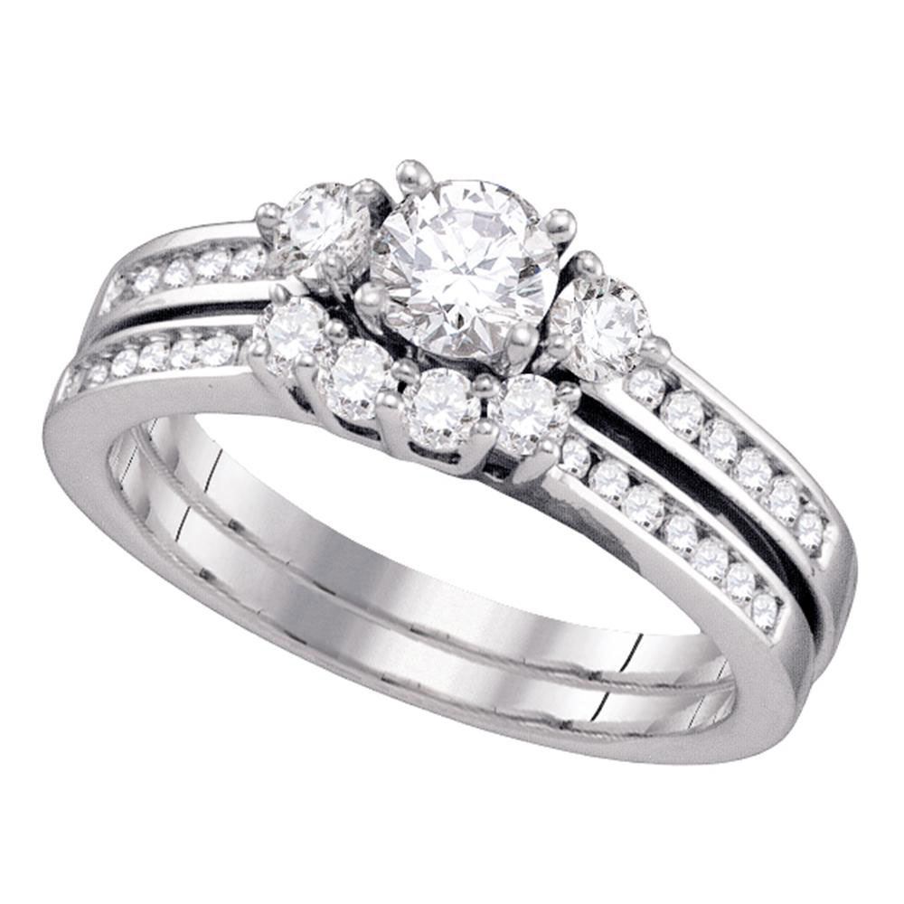 REF-112X5A ---- Round Diamond Bridal Wedding Ring Band Set 1 Cttw 14kt White Gold
