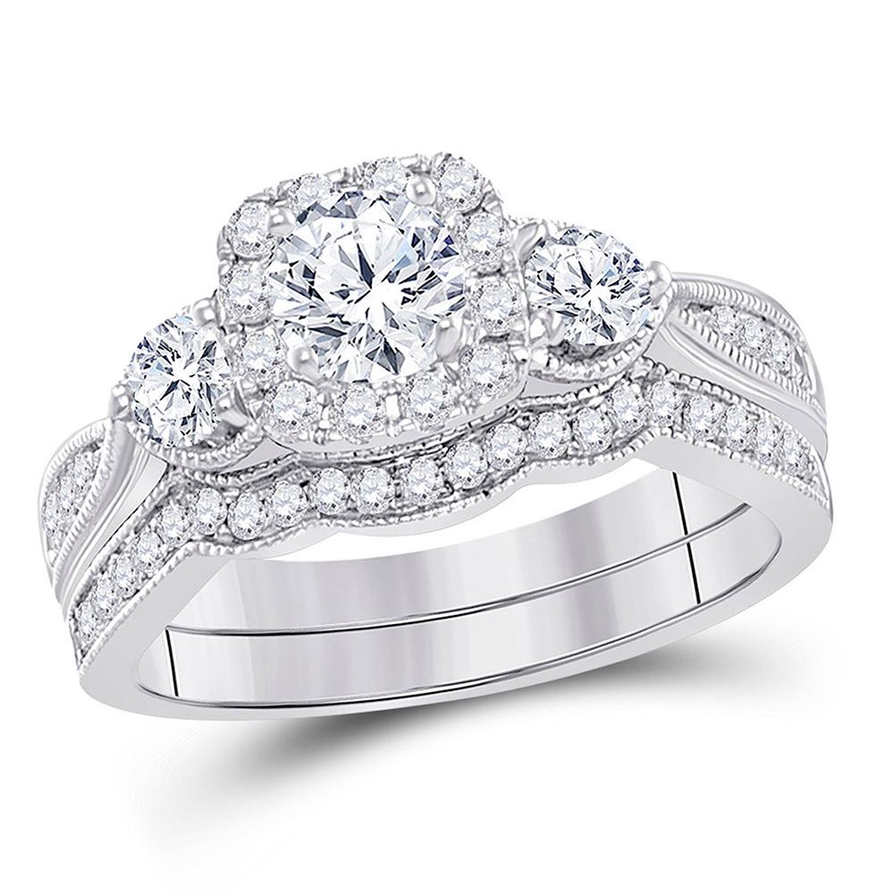 REF-154W9K ---- Round Diamond Bridal Wedding Ring Band Set 1 Cttw 14kt White Gold