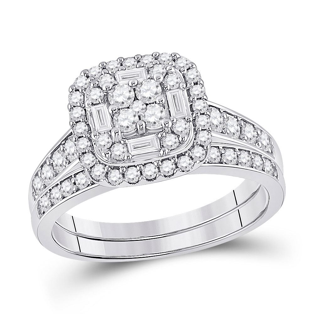 REF-74K5Y ---- Round Diamond Bridal Wedding Ring Band Set 1 Cttw 14kt White Gold