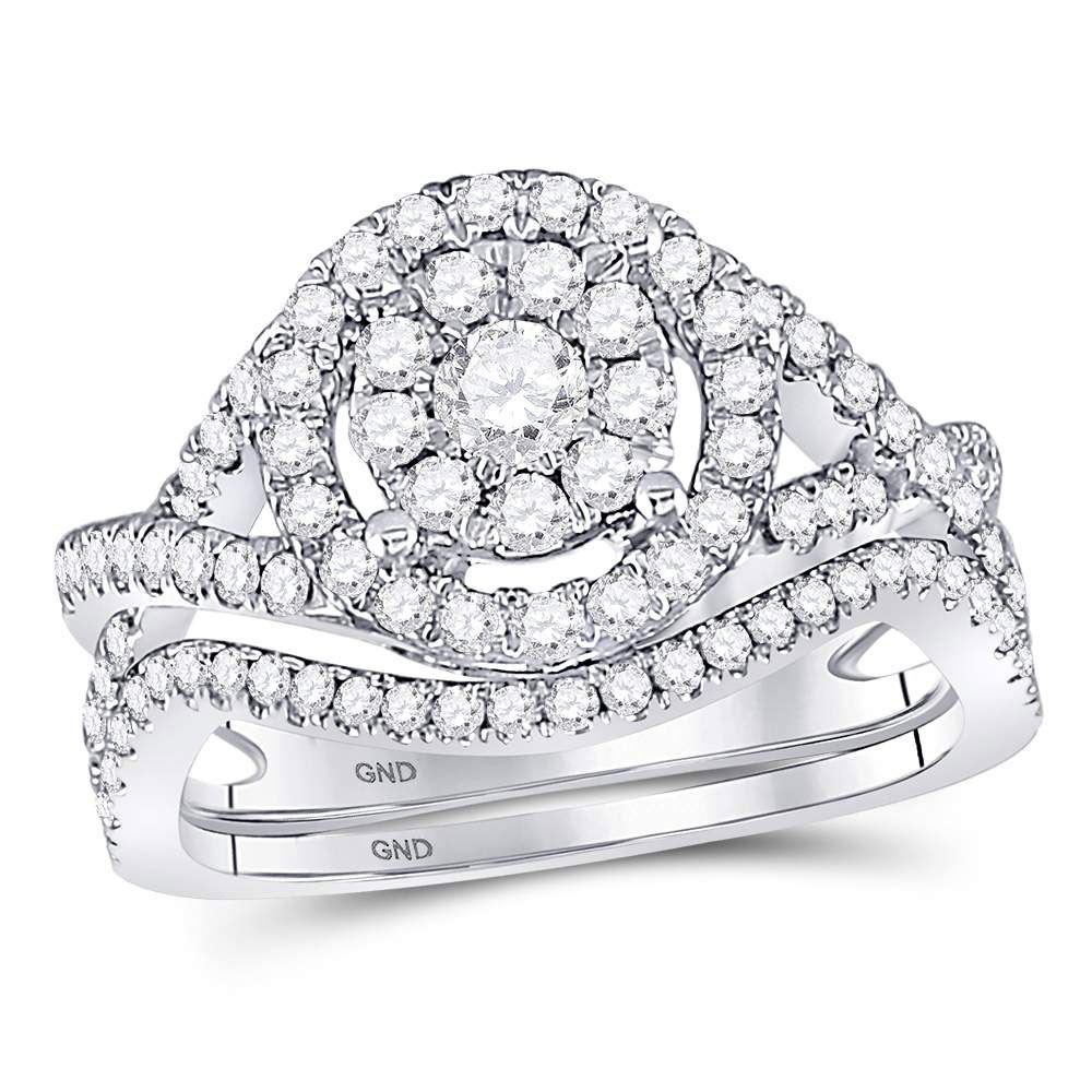REF-85F5W ---- Round Diamond Bridal Wedding Ring Band Set 1 Cttw 14kt White Gold