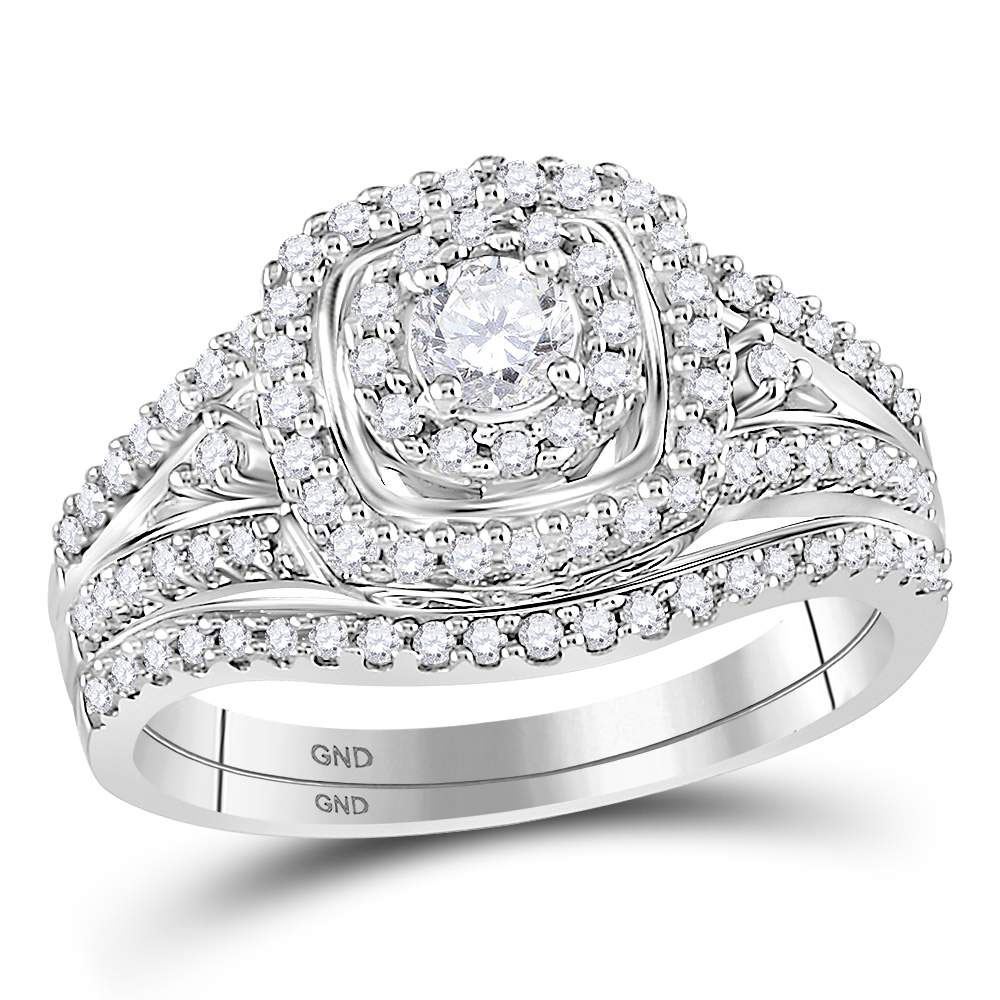 REF-71W5K ---- Round Diamond Bridal Wedding Ring Band Set 3/4 Cttw 14kt White Gold