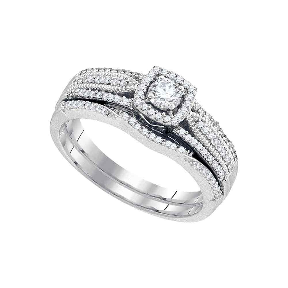 10k White Gold Round Diamond Bridal Wedding Ring Band Set 3/8 Cttw