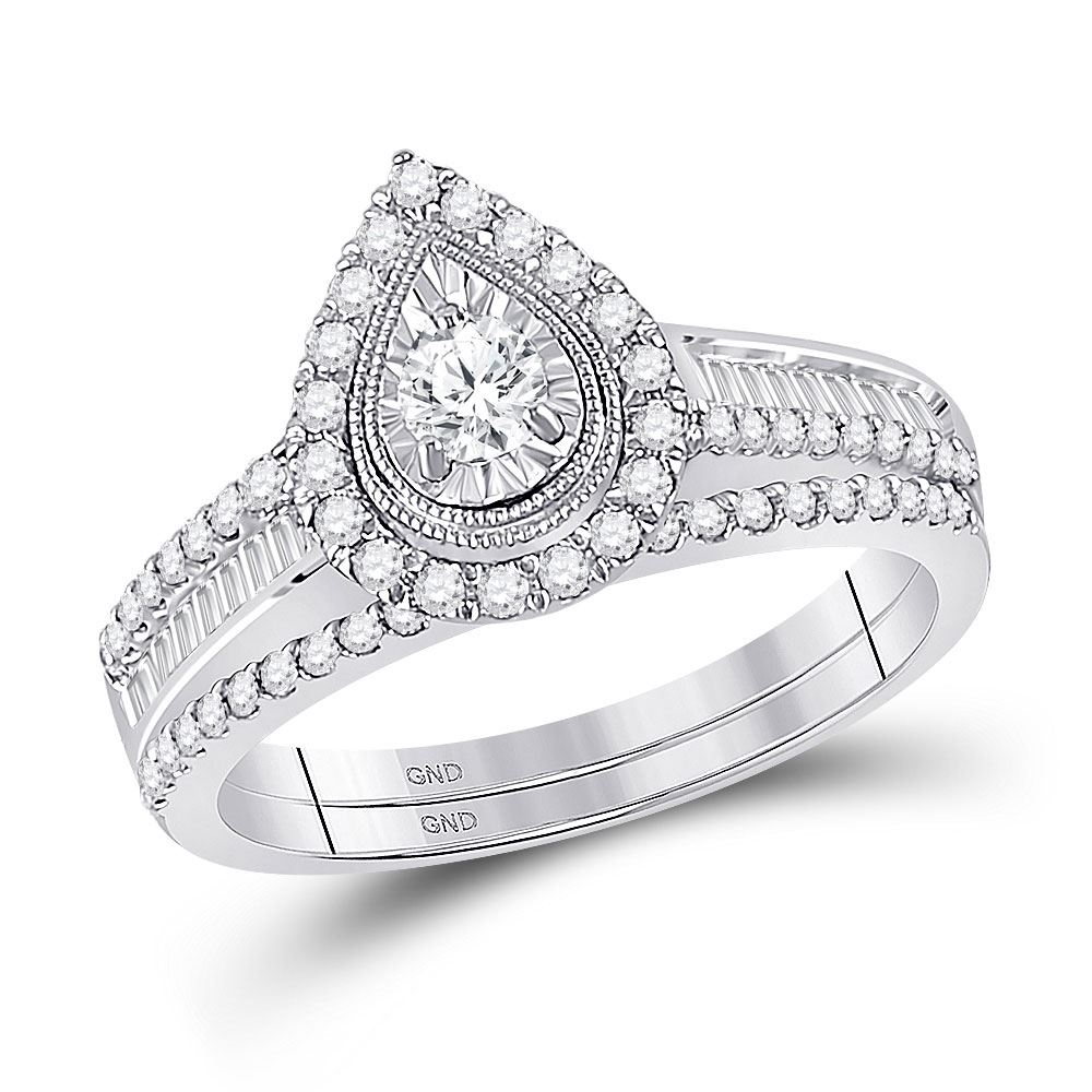 10kt White Gold Round Diamond Bridal Wedding Ring Band Set 5/8 CttwItem Number: GND458198Gemstone Details5/8 Carats total weight --- 1/6 carat center solitaire