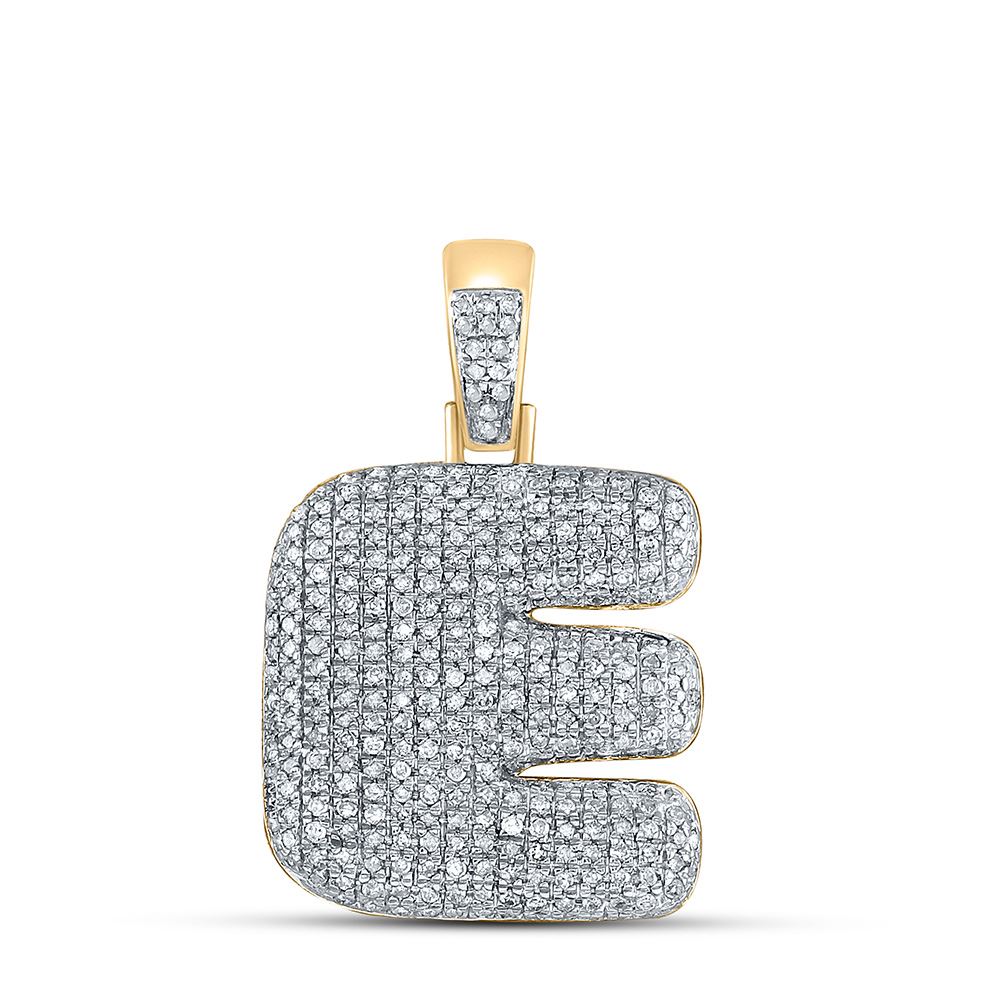 10kt Yellow Gold Mens Round Diamond Bubble E Letter Charm Pendant 1 Cttw.