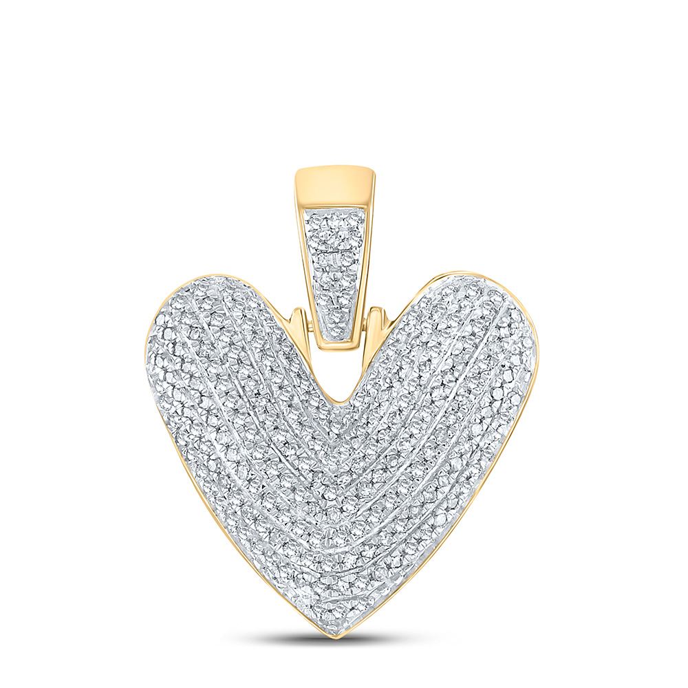 10kt Yellow Gold Mens Round Diamond Bubble V Letter Charm Pendant 5/8 Cttw.