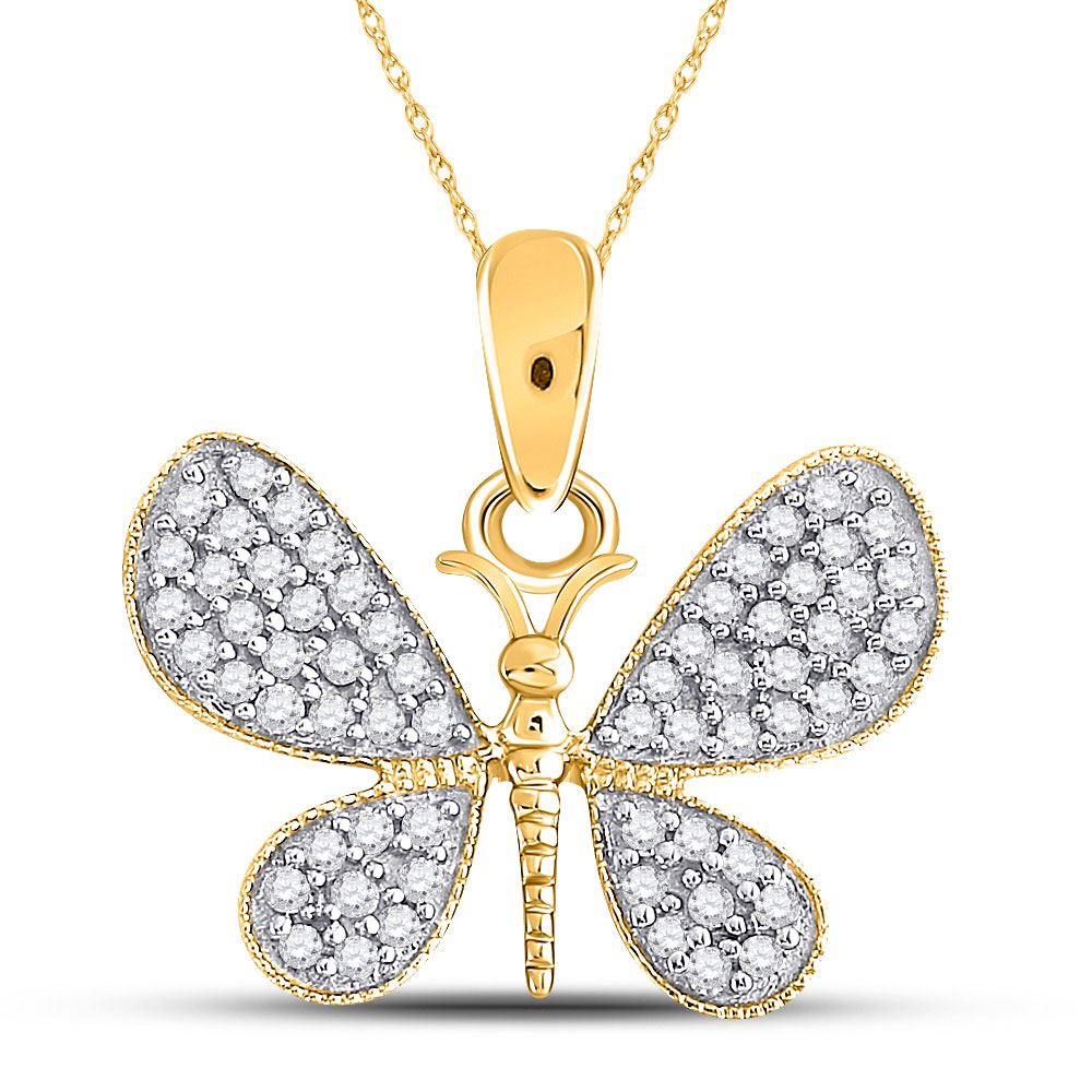 10kt Yellow Gold Womens Round Diamond Butterfly Bug Pendant 1/3 Cttw.