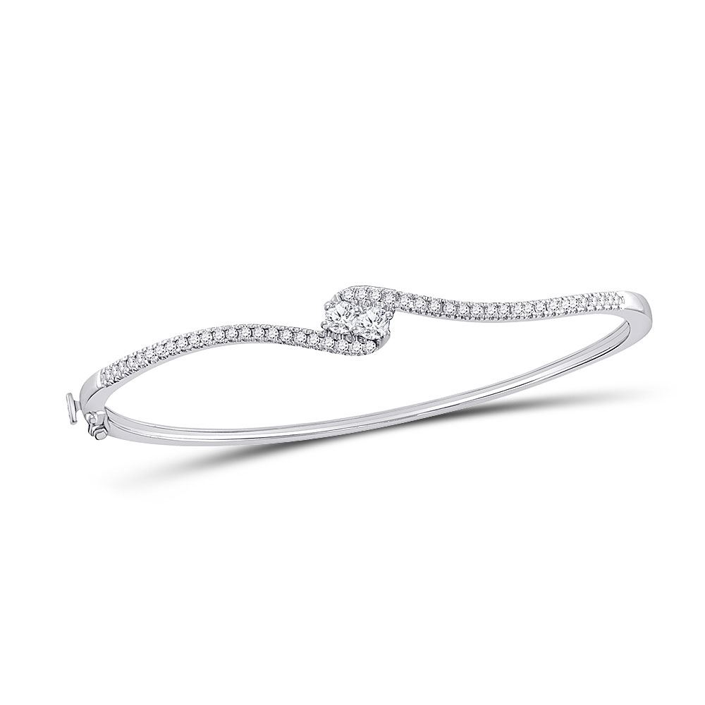 Round Diamond Bypass 2-stone Bracelet 3/4 Cttw 14KT White Gold