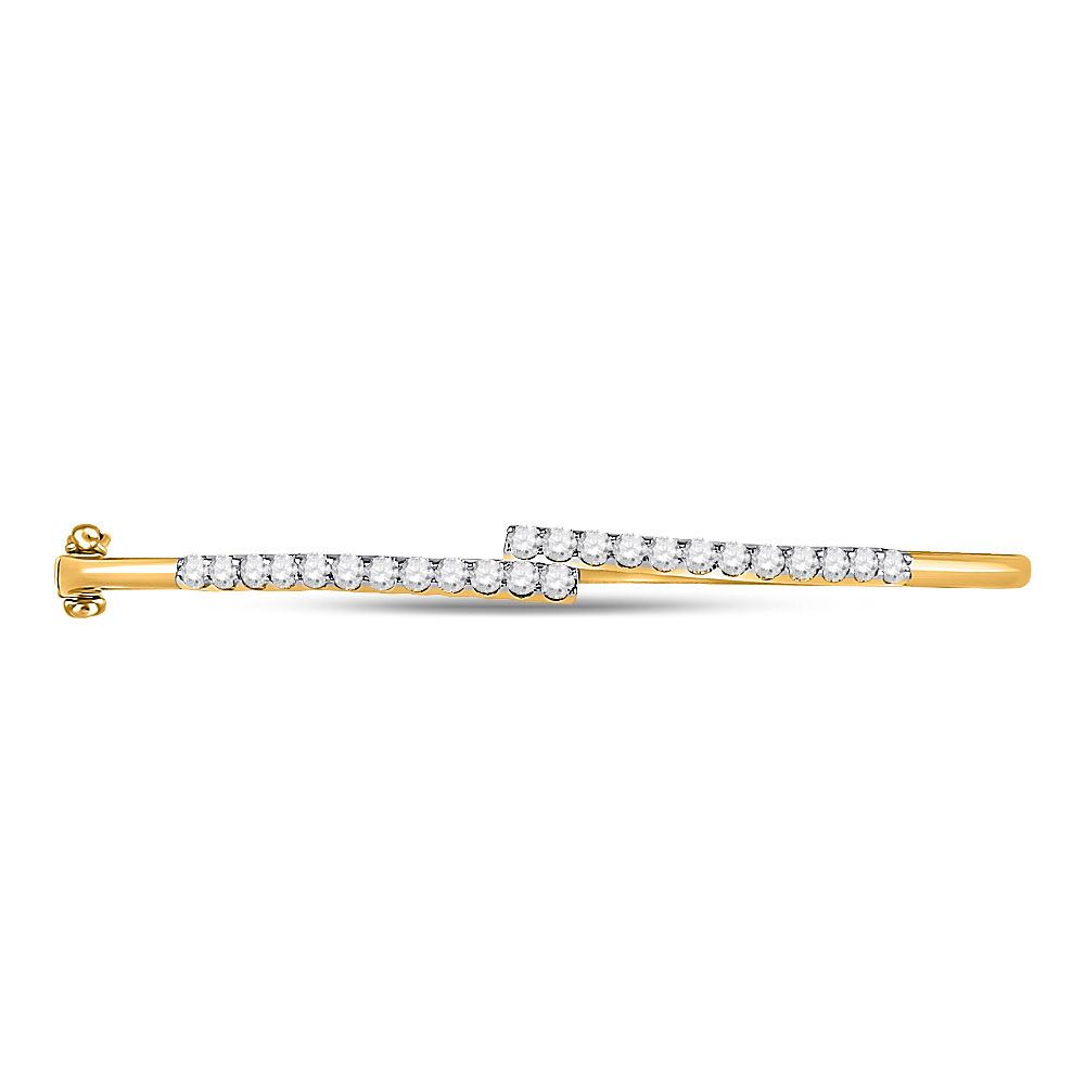 14kt Yellow Gold Womens Round Diamond Bypass Bangle Bracelet 1 Cttw.