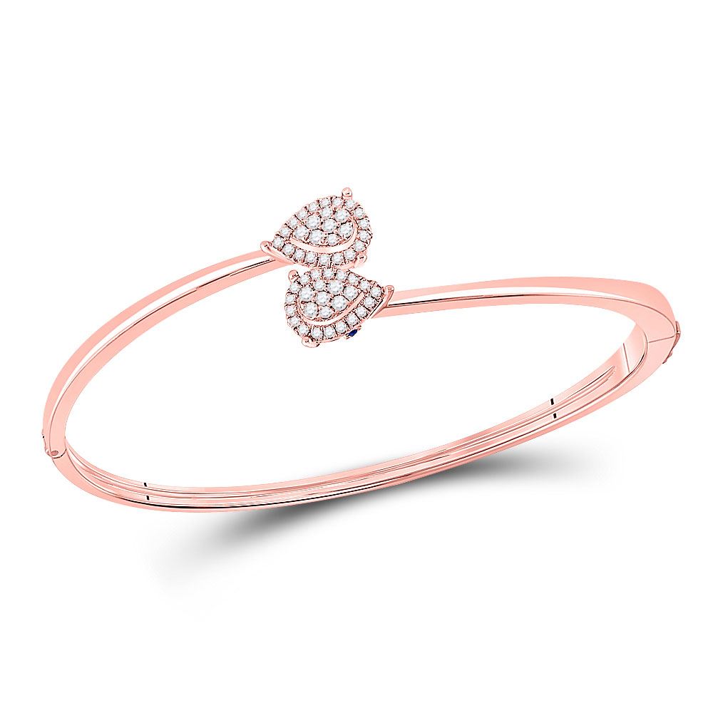 14kt Rose Gold Womens Round Diamond Bypass Pear Cluster Bracelet 1/2 Cttw.