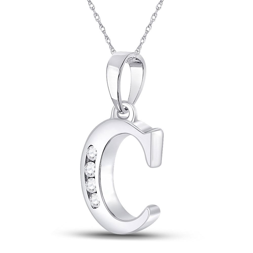 10kt White Gold Womens Round Diamond C Letter Pendant 1/20 Cttw.
