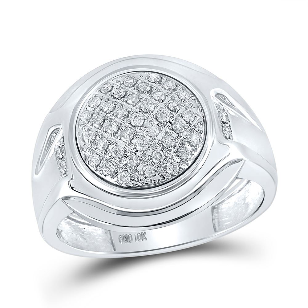 10kt White Gold Mens Round Diamond Circle Cluster Ring 1/3 Cttw.
