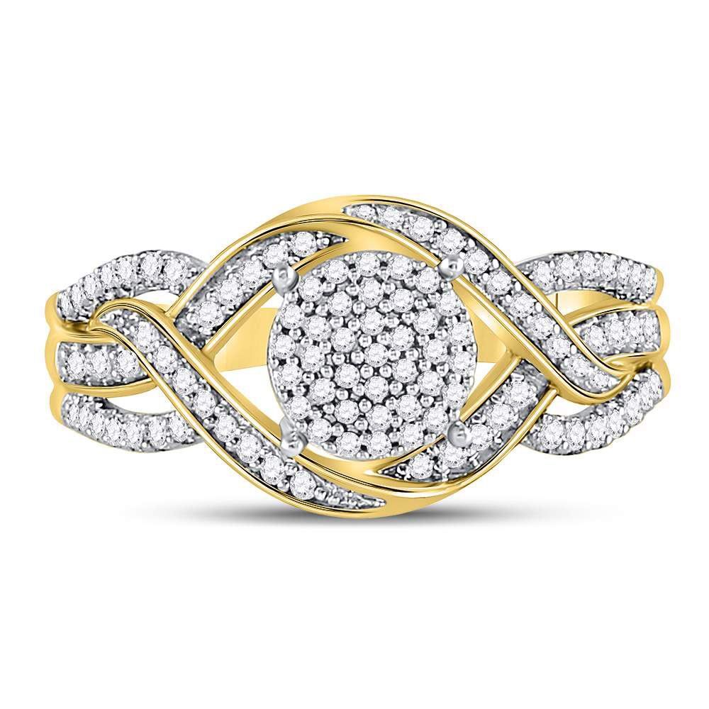 10kt Yellow Gold Womens Round Diamond Circle Cluster Twist Ring 1/4 Cttw.