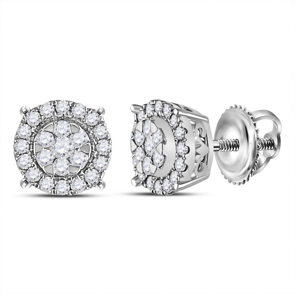Round Diamond Circle Halo Cluster Earrings 1/4 Cttw 14KT White Gold
