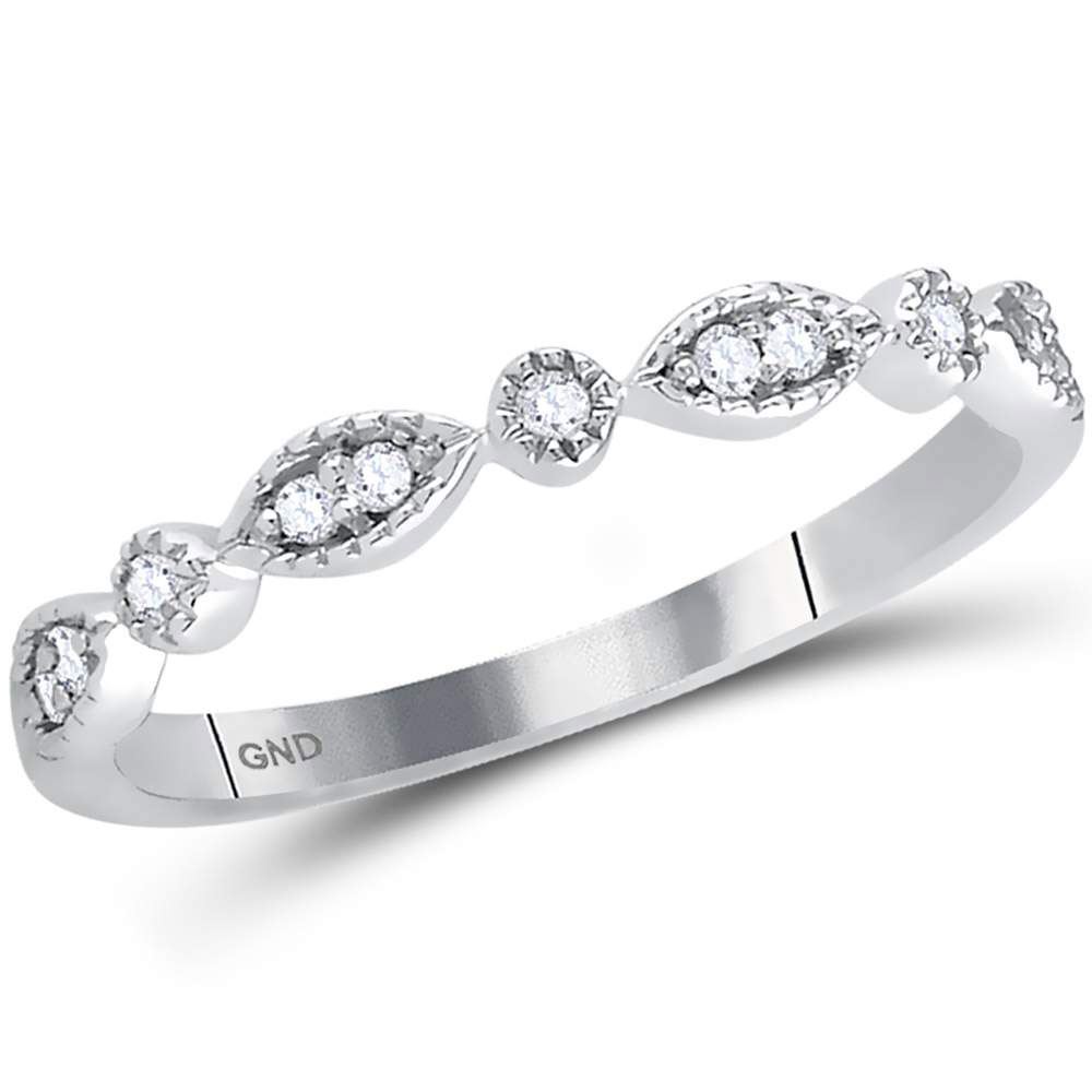 14kt White Gold Womens Round Diamond Classic Stackable Band Ring 1/10 Cttw.