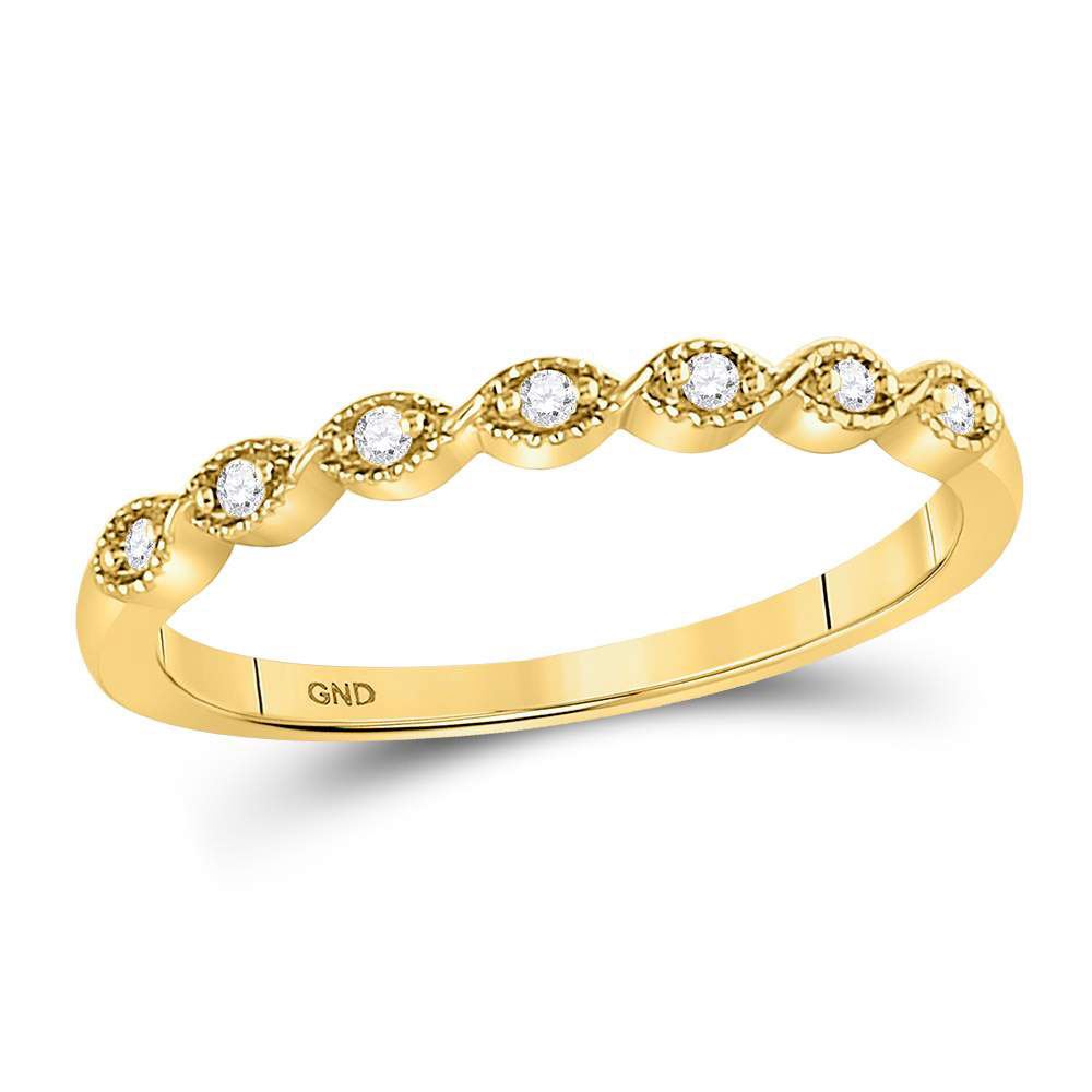 14kt Yellow Gold Womens Round Diamond Classic Stackable Band Ring 1/20 Cttw.