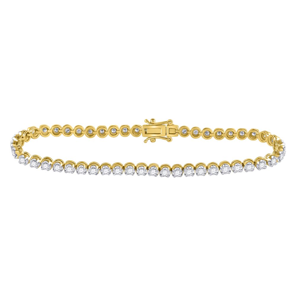 14kt Yellow Gold Womens Round Diamond Classic Tennis Bracelet 2 Cttw.