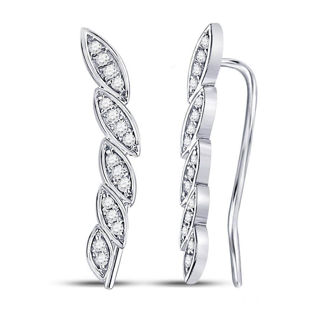 14kt White Gold Womens Round Diamond Climber Earrings 1/5 Cttw.