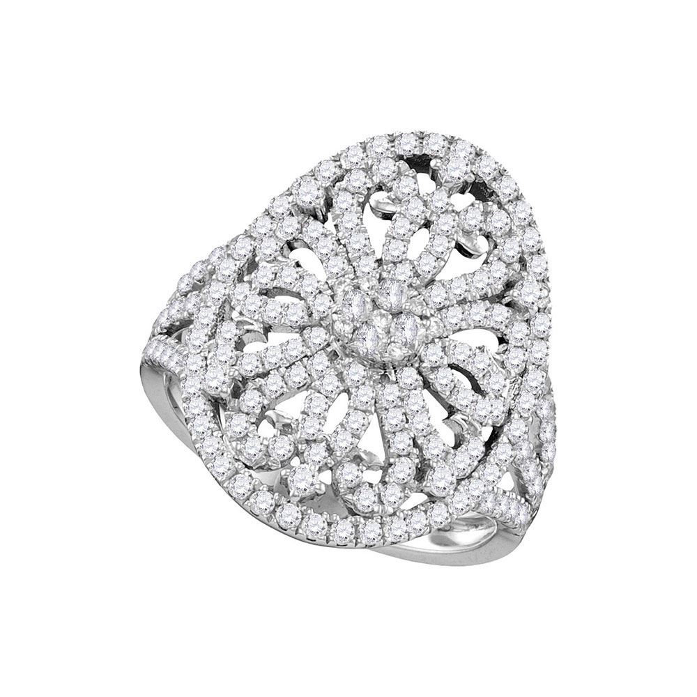 REF-89W5K ---- Round Diamond Cluster Bridal Wedding Engagement Ring 1 Cttw 14kt White Gold