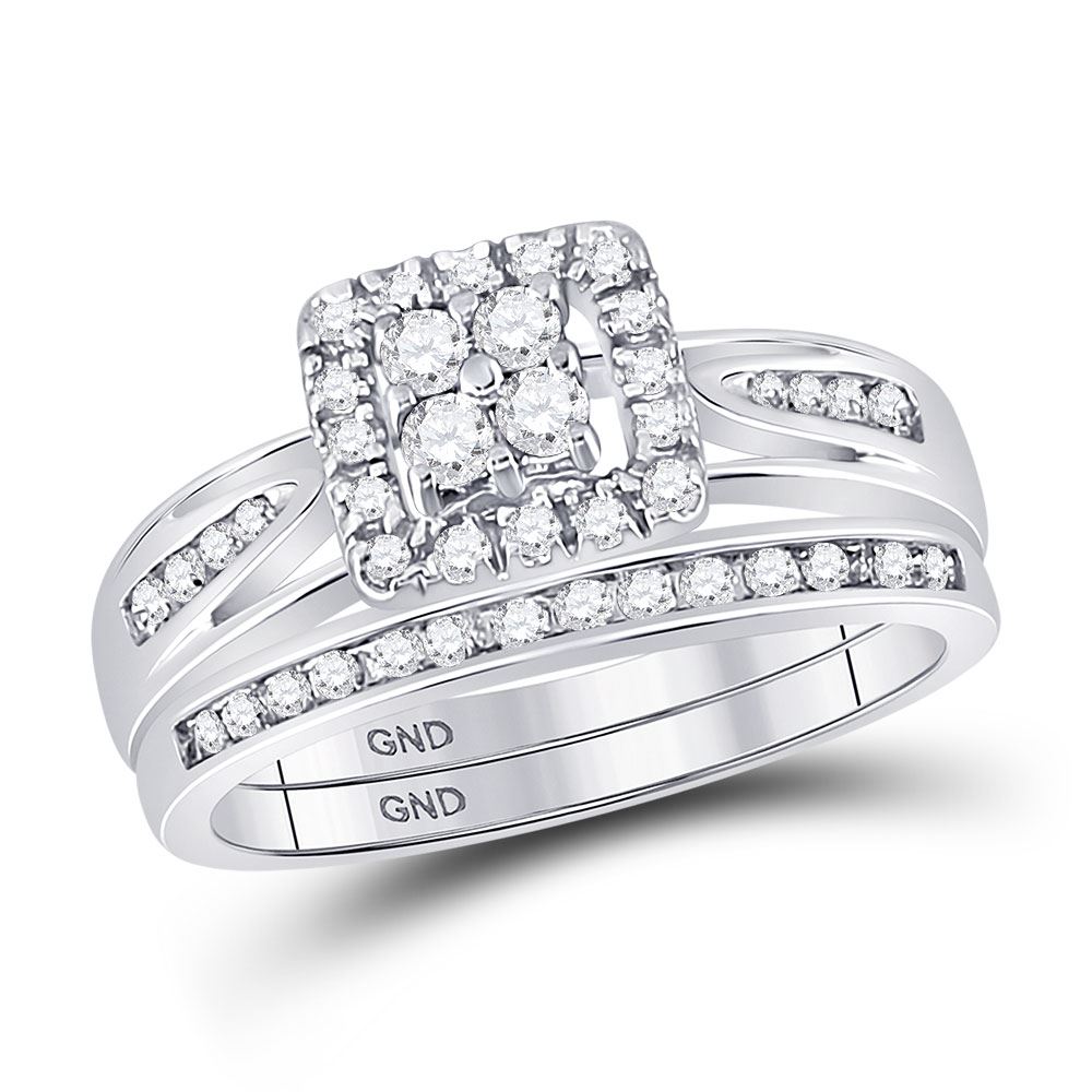 REF-44Y5N ---- Round Diamond Cluster Bridal Wedding Ring Band Set 1/2 Cttw 10kt White Gold