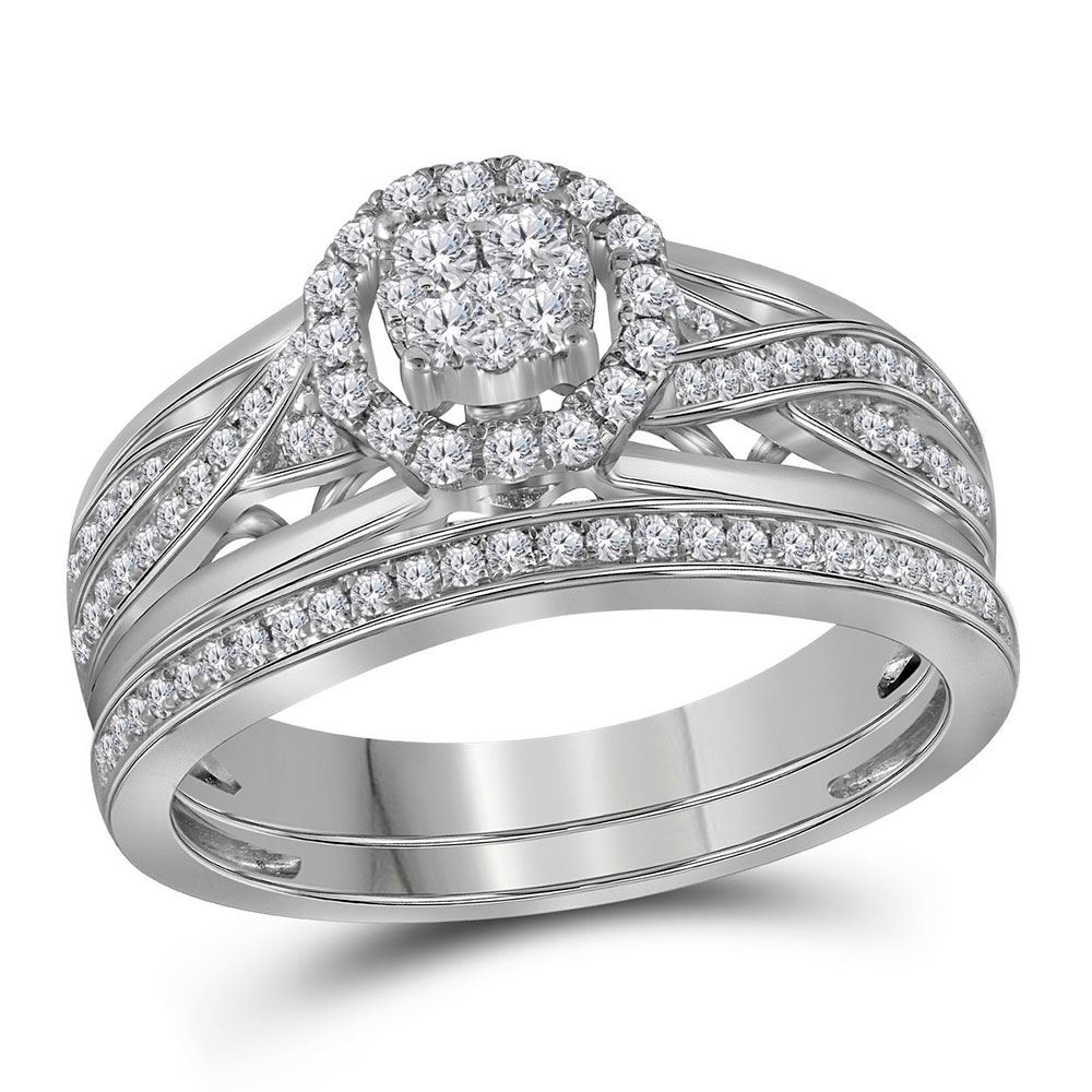 REF-60Y5N ---- Round Diamond Cluster Bridal Wedding Ring Band Set 1/2 Cttw 14kt White Gold