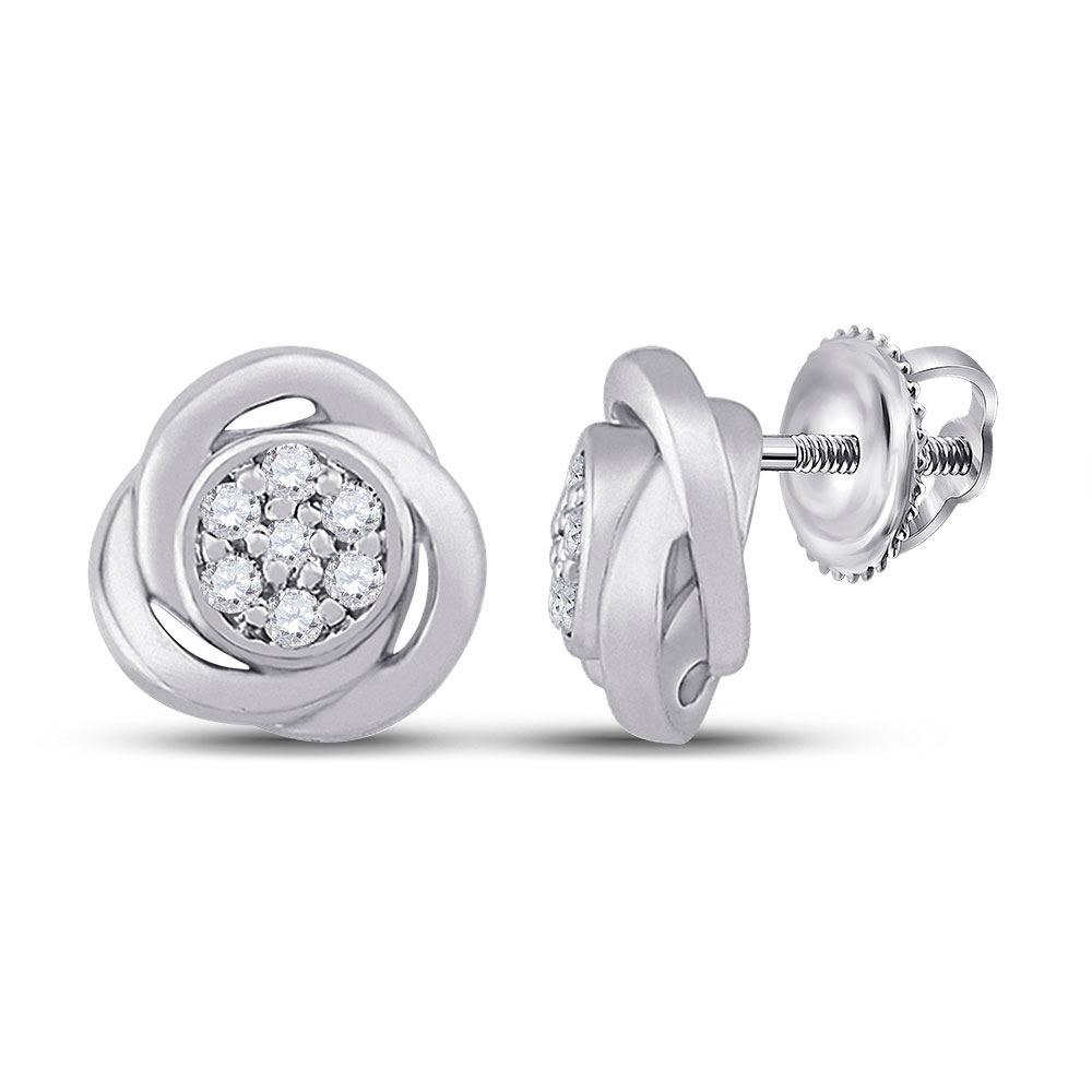 10kt White Gold Womens Round Diamond Cluster Earrings 1/10 Cttw.