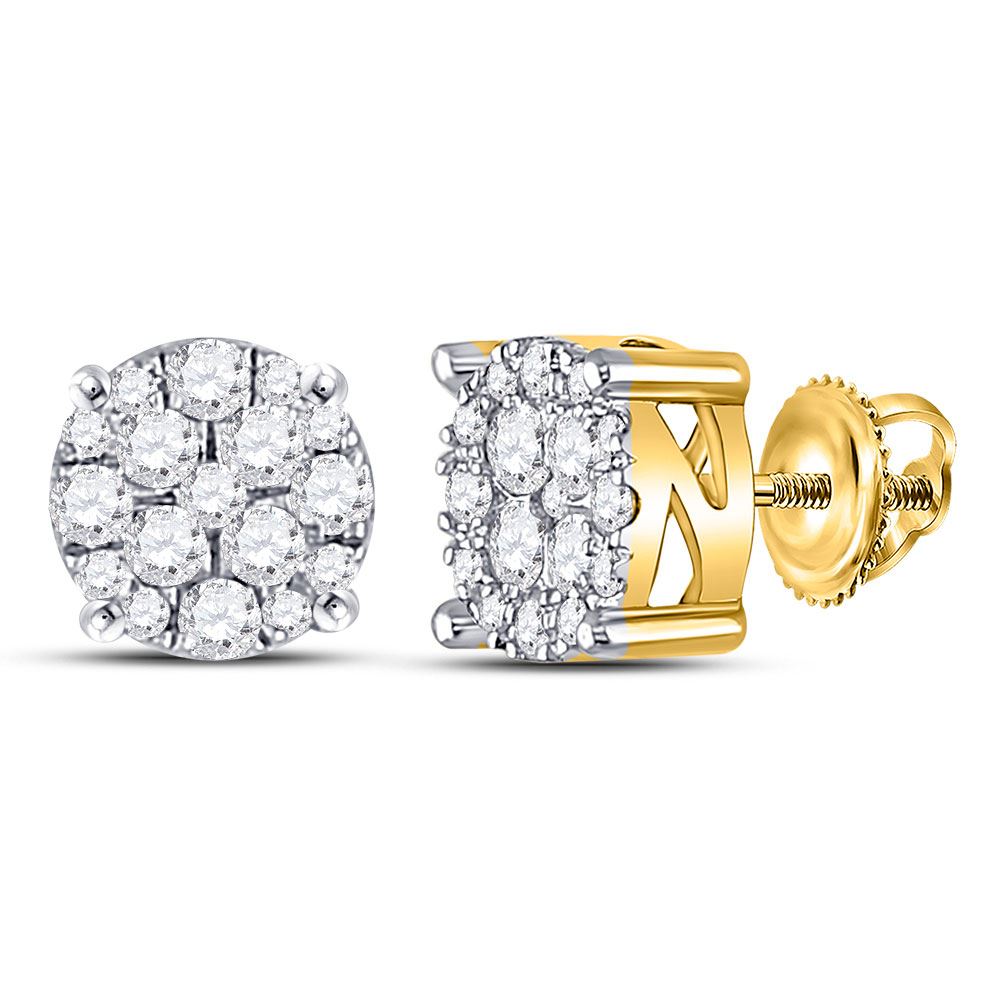 10kt Yellow Gold Womens Round Diamond Cluster Earrings 1/4 Cttw.