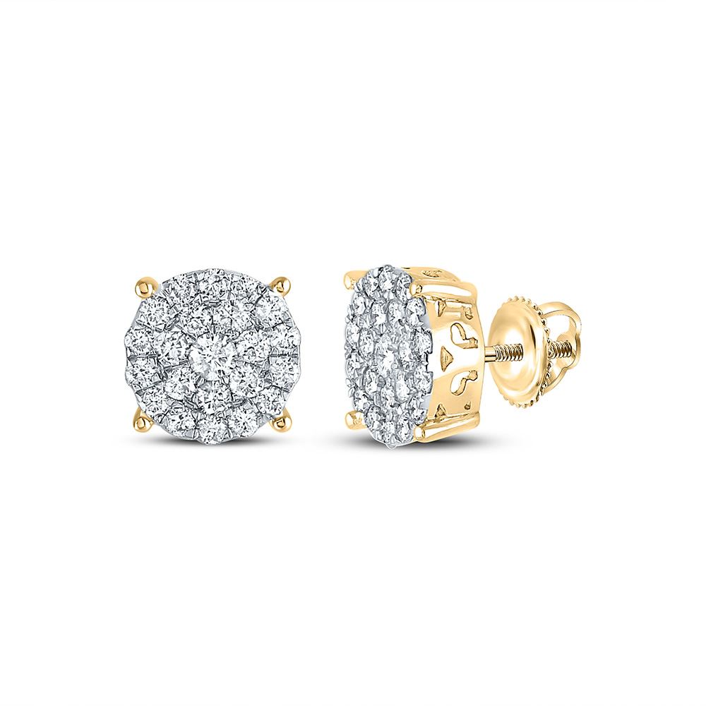 10kt Yellow Gold Womens Round Diamond Cluster Earrings 2 Cttw.