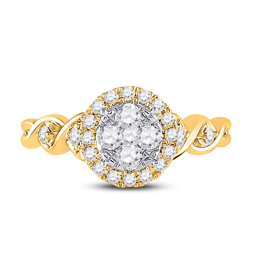 10kt Yellow Gold Womens Round Diamond Cluster Halo Ring 1/2 Cttw.