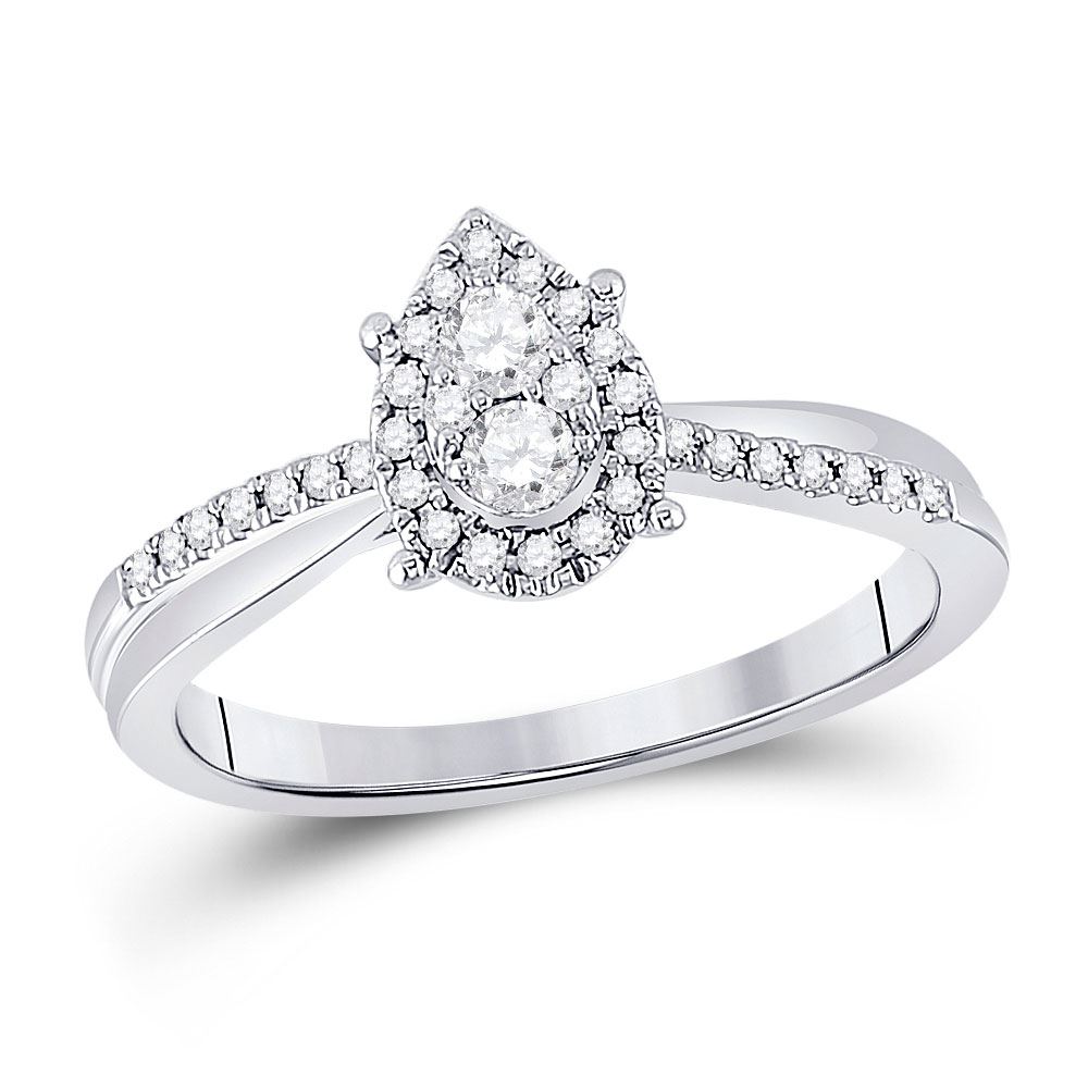 10kt White Gold Womens Round Diamond Cluster Pear Promise Ring 1/4 Cttw.