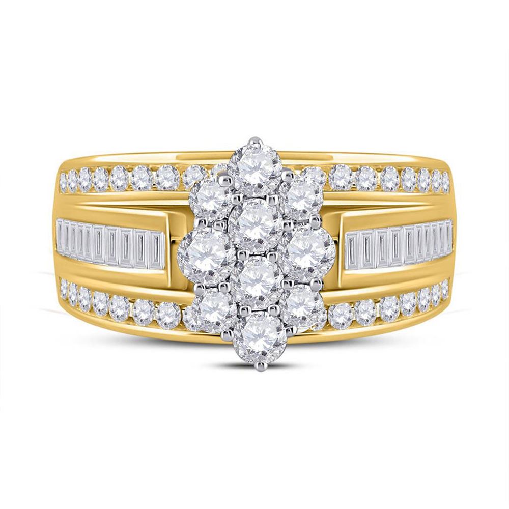 14kt Yellow Gold Womens Round Diamond Cluster Ring 1-1/2 Cttw.