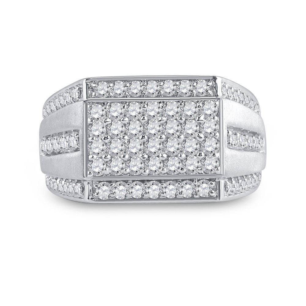10kt White Gold Mens Round Diamond Cluster Ring 1-1/4 Cttw.