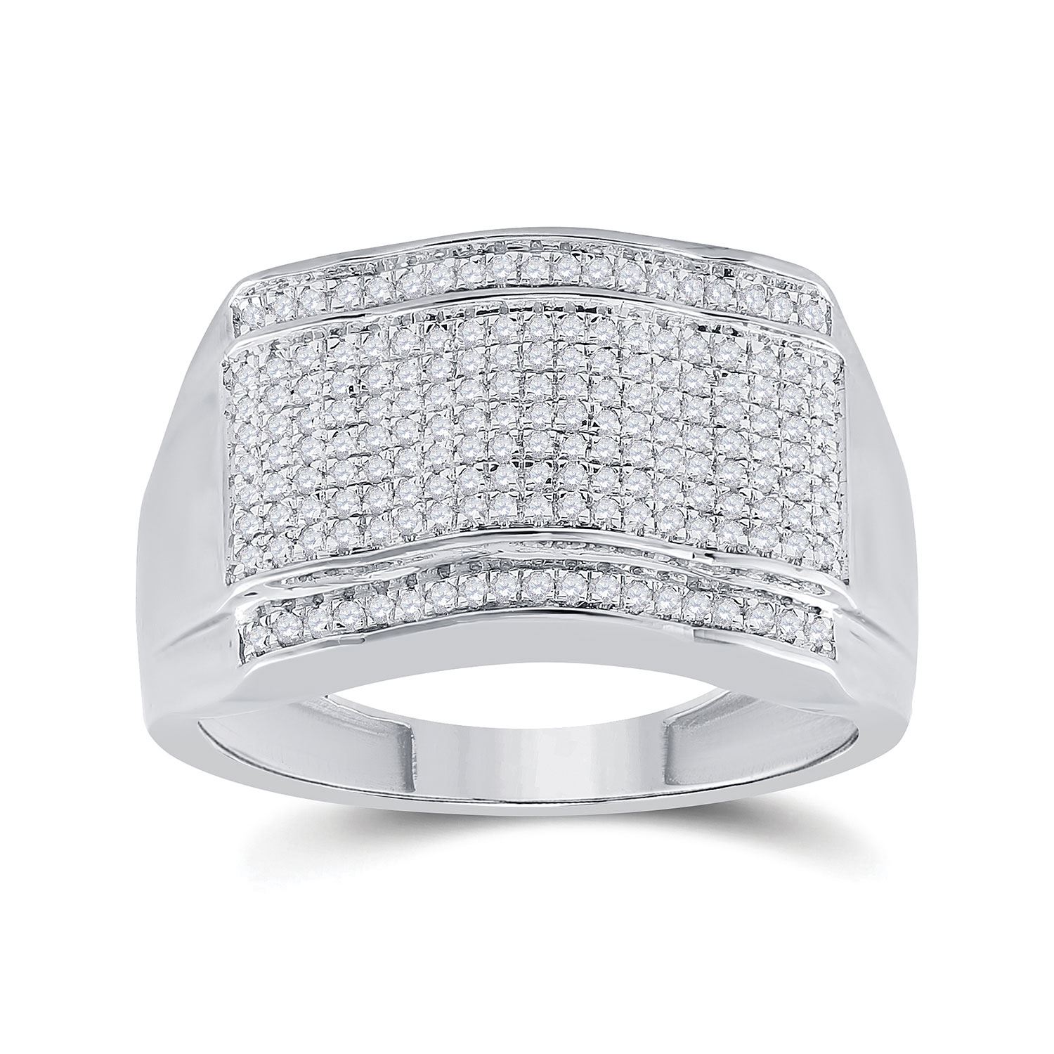 10kt White Gold Mens Round Diamond Cluster Ring 1/2 Cttw.