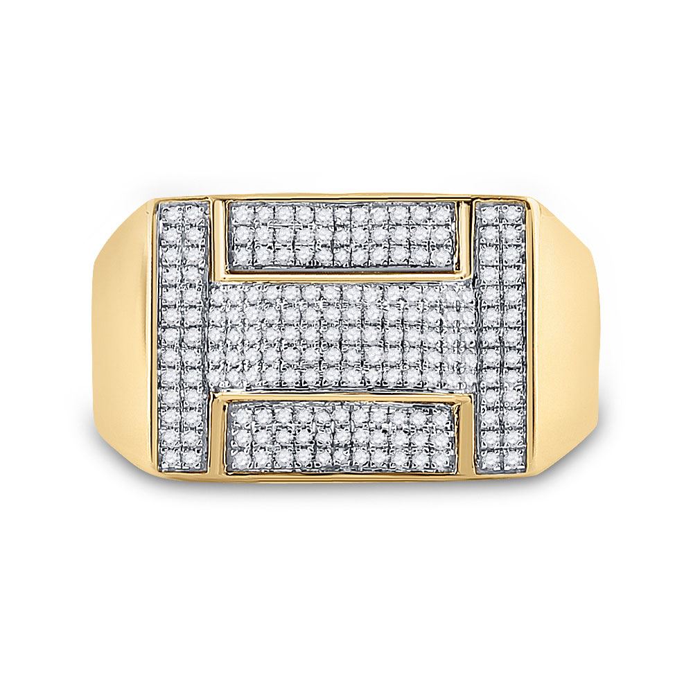 10kt Yellow Gold Mens Round Diamond Cluster Ring 1/2 Cttw.