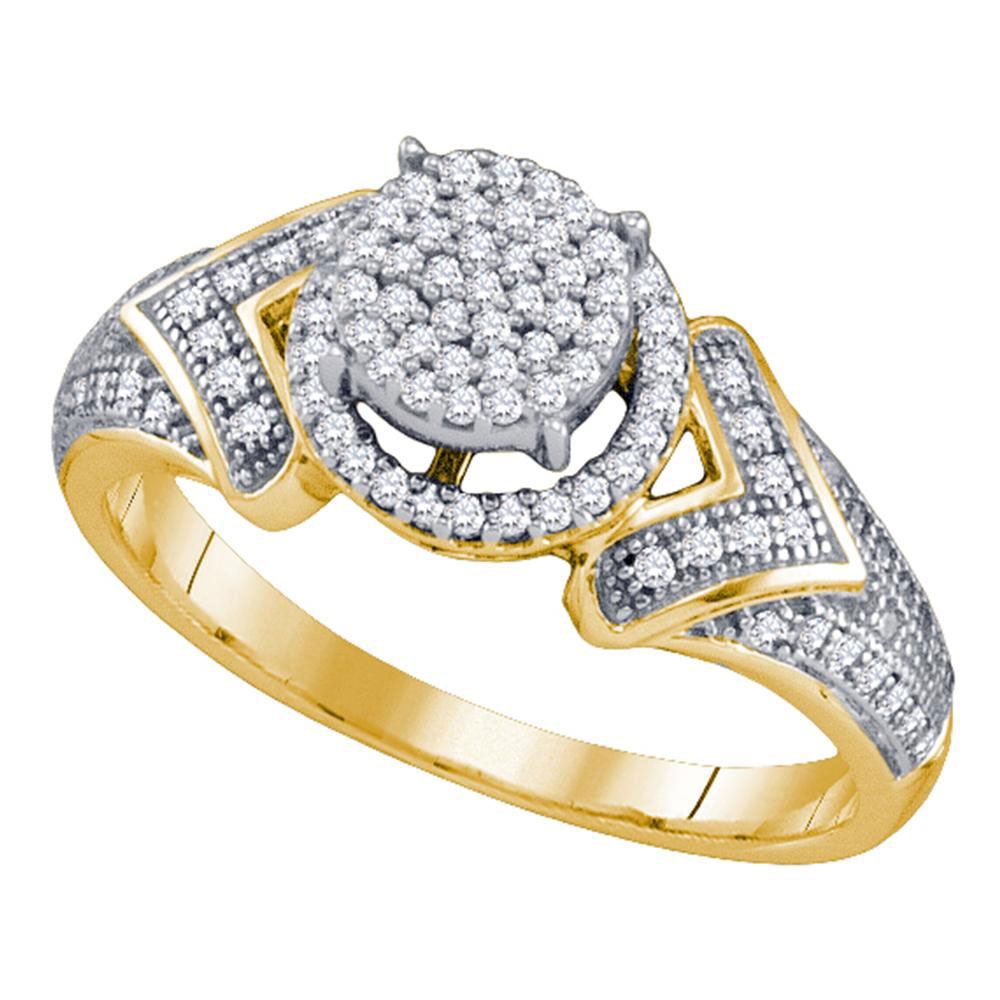 10kt Yellow Gold Womens Round Diamond Cluster Ring 1/3 Cttw.