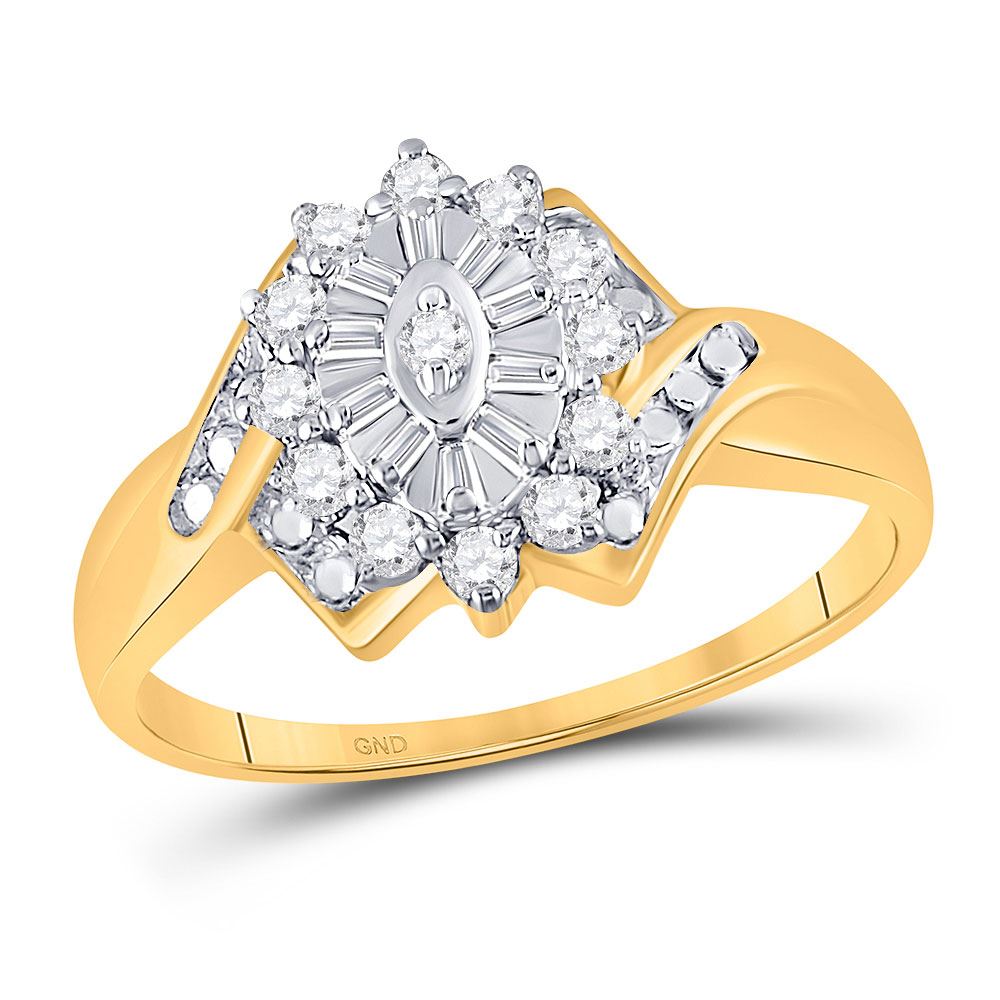 10kt Yellow Gold Womens Round Diamond Cluster Ring 1/4 Cttw.