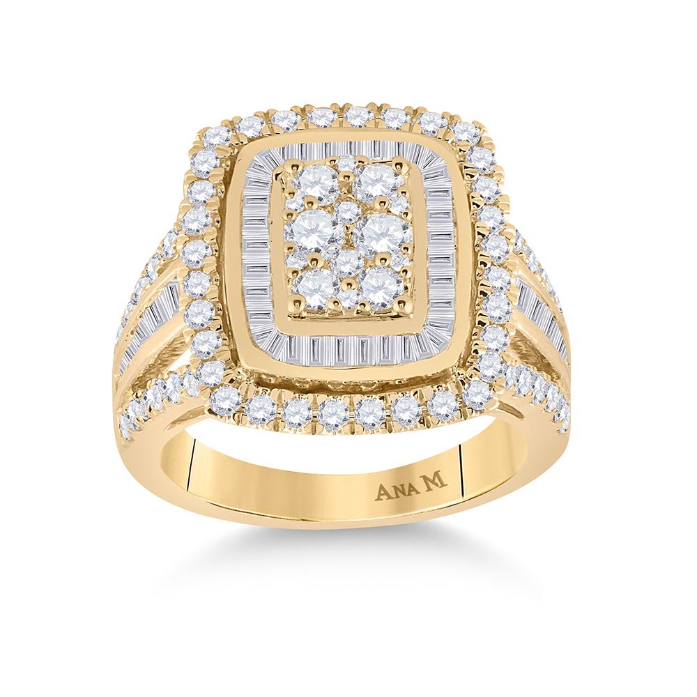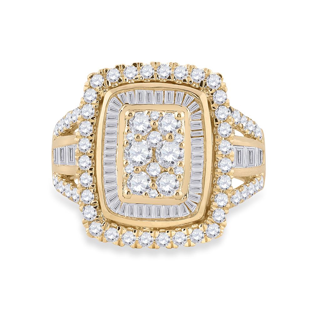 14kt Yellow Gold Womens Round Diamond Cluster Ring 1-7/8 Cttw.