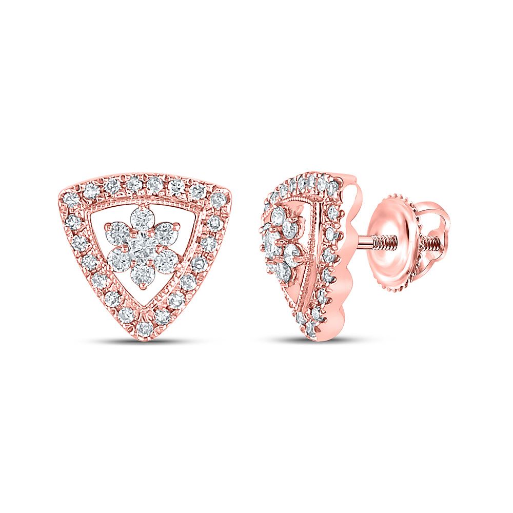 14kt Rose Gold Womens Round Diamond Cluster Triangle Earrings 3/8 Cttw.
