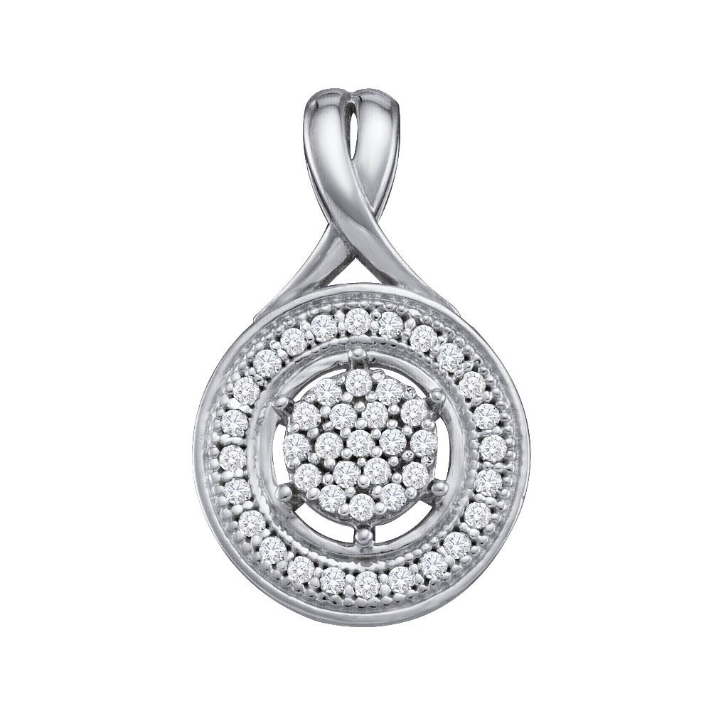 10k White Gold Round Diamond Cluster Womens Circle Pendant 1/6 Cttw