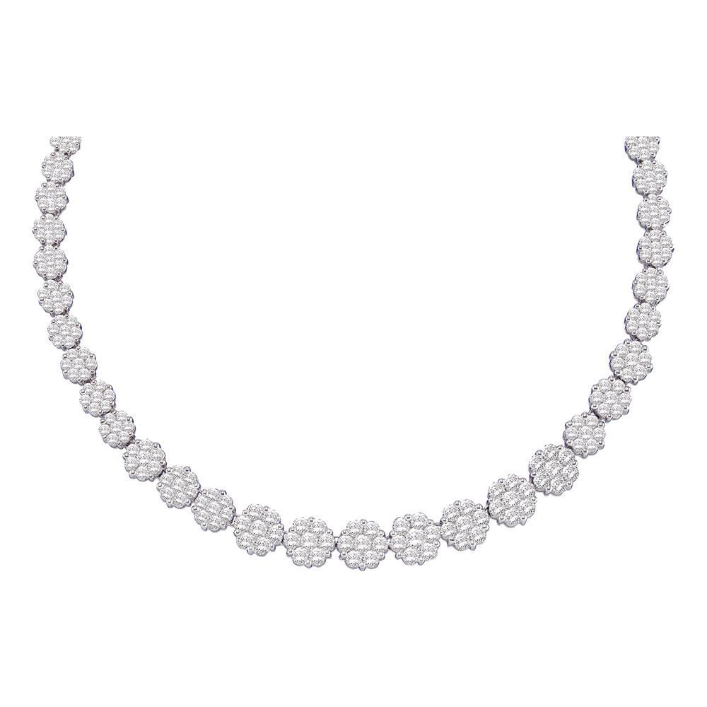 Round Diamond Cocktail Flower Cluster Necklace 14 Cttw 14KT White Gold