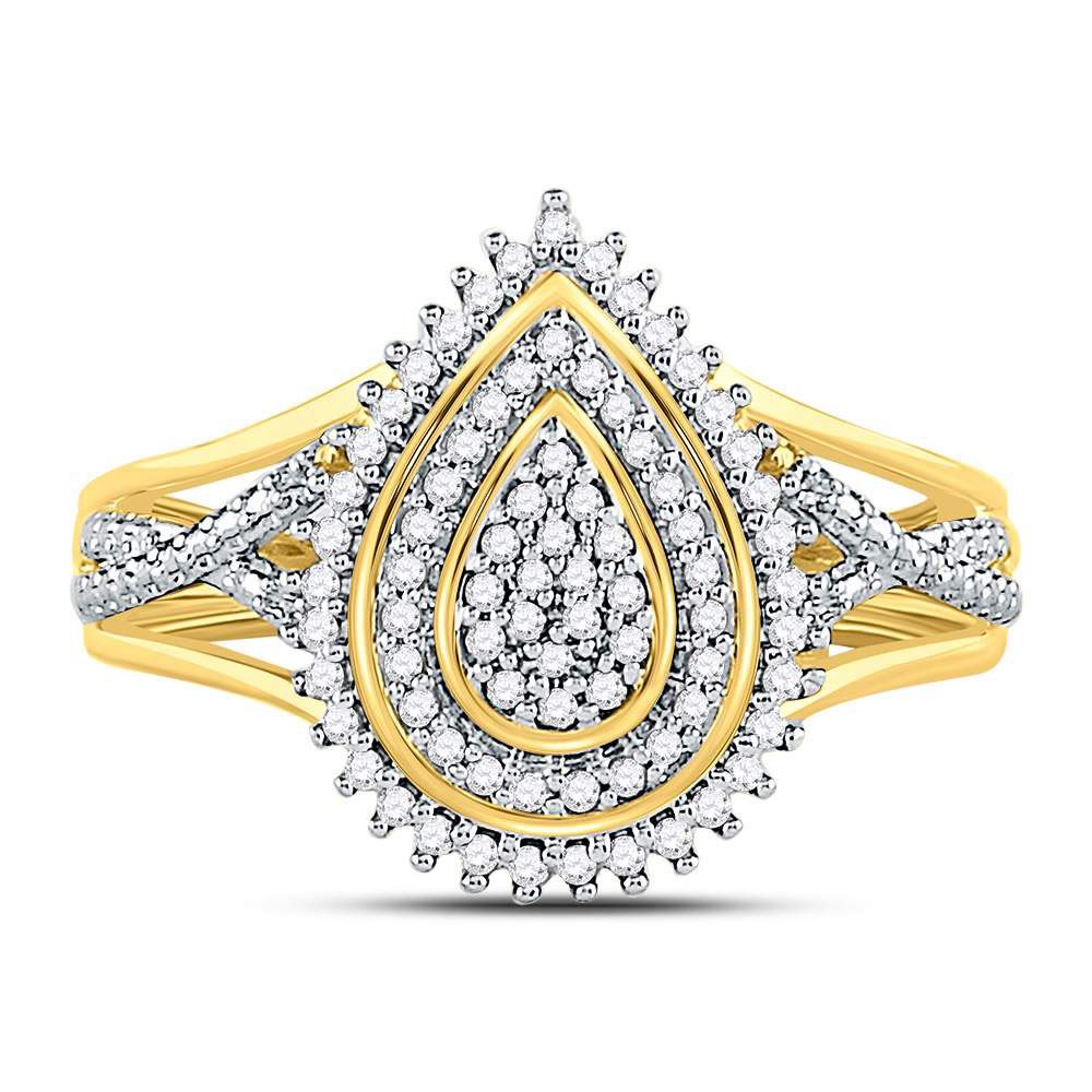 10kt Yellow Gold Womens Round Diamond Concentric Teardrop Cluster Ring 1/4 Cttw.