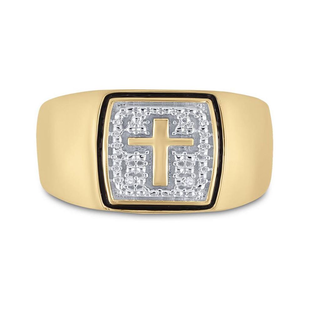 10kt Yellow Gold Mens Round Diamond Cross Band Ring .02 Cttw.