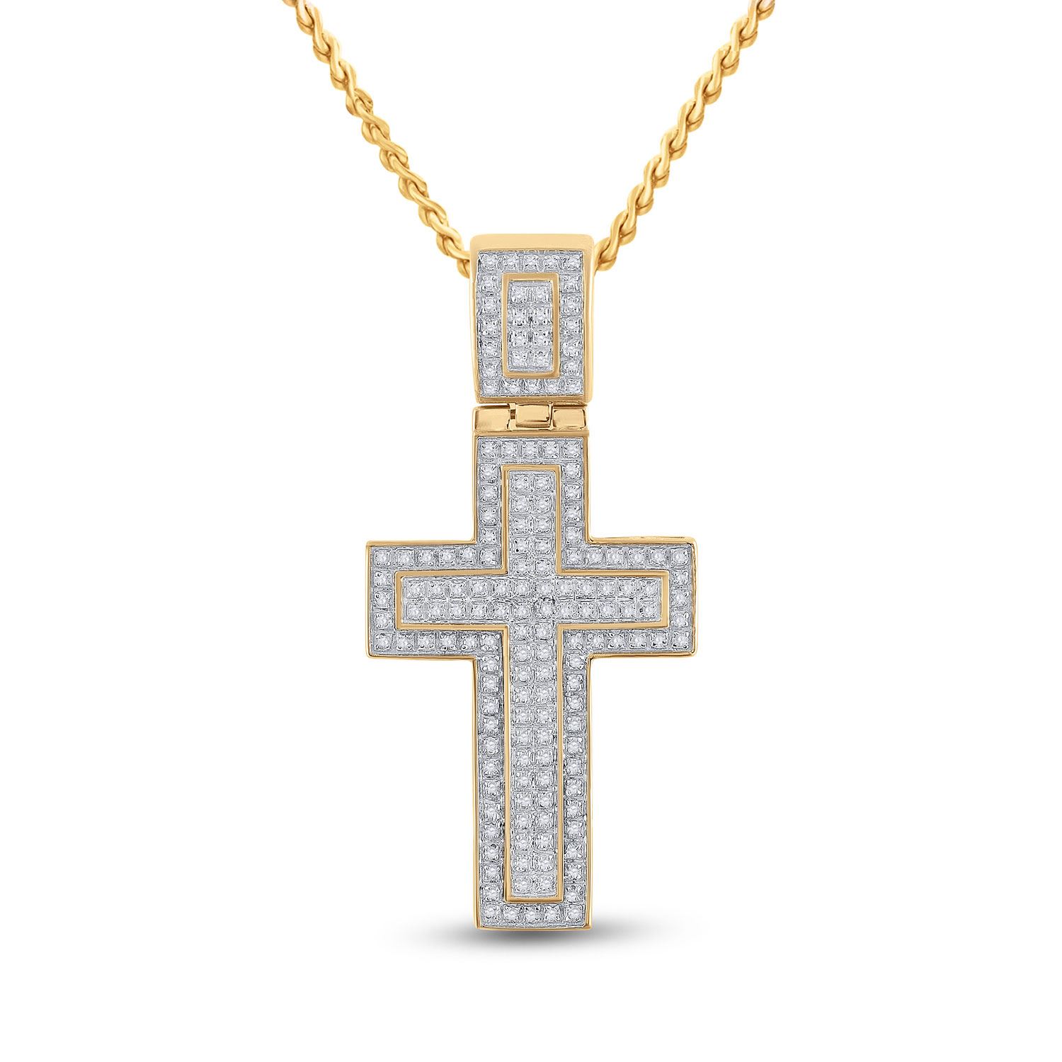 10kt Yellow Gold Mens Round Diamond Cross Charm Pendant 1/2 Cttw.