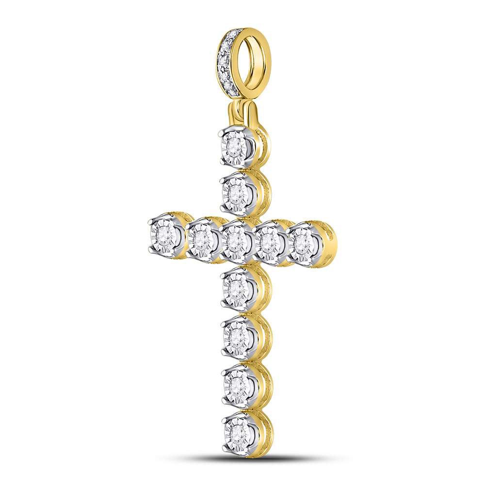 10kt Yellow Gold Mens Round Diamond Cross Charm Pendant 1/3 Cttw.