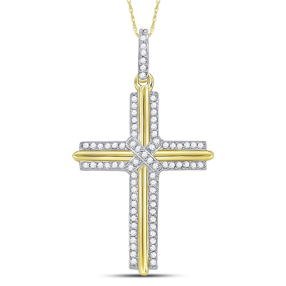 Round Diamond Cross Charm Pendant 1/5 Cttw 10KT Yellow Gold