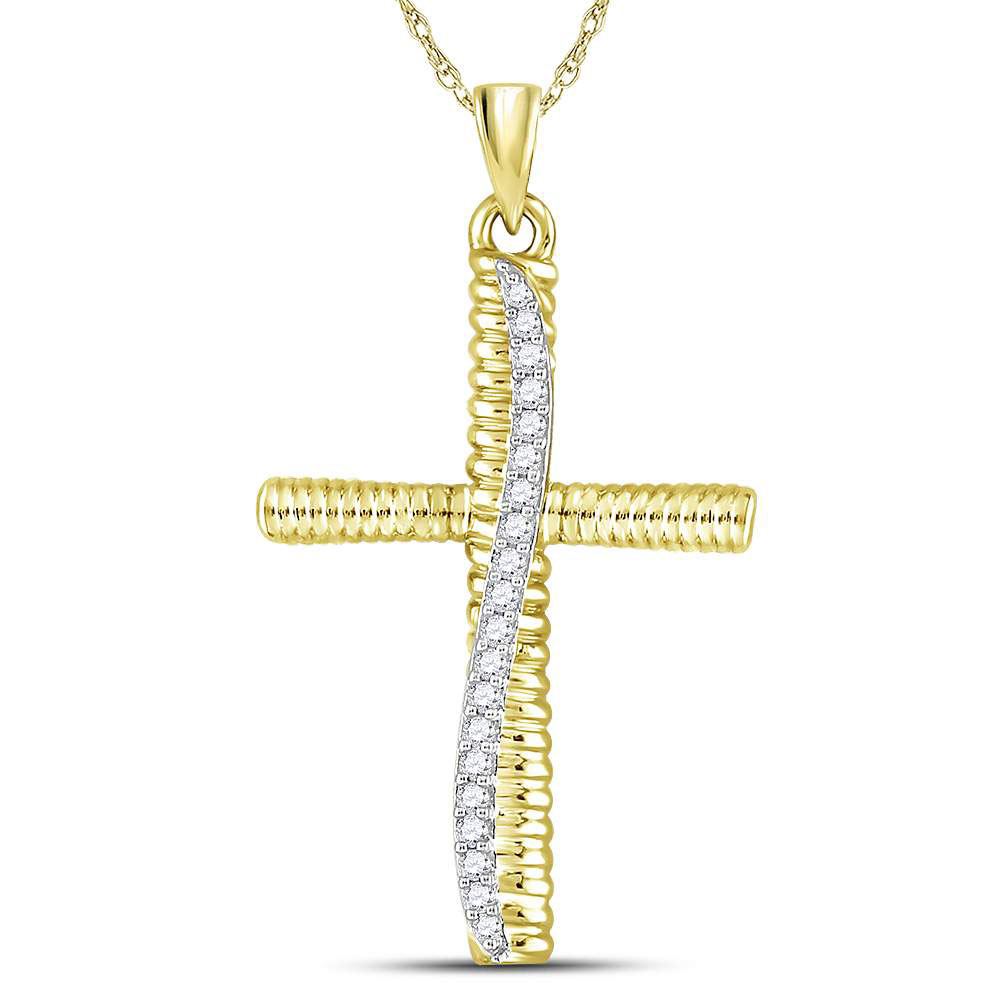 Round Diamond Cross Charm Pendant 1/6 Cttw 10KT Yellow Gold