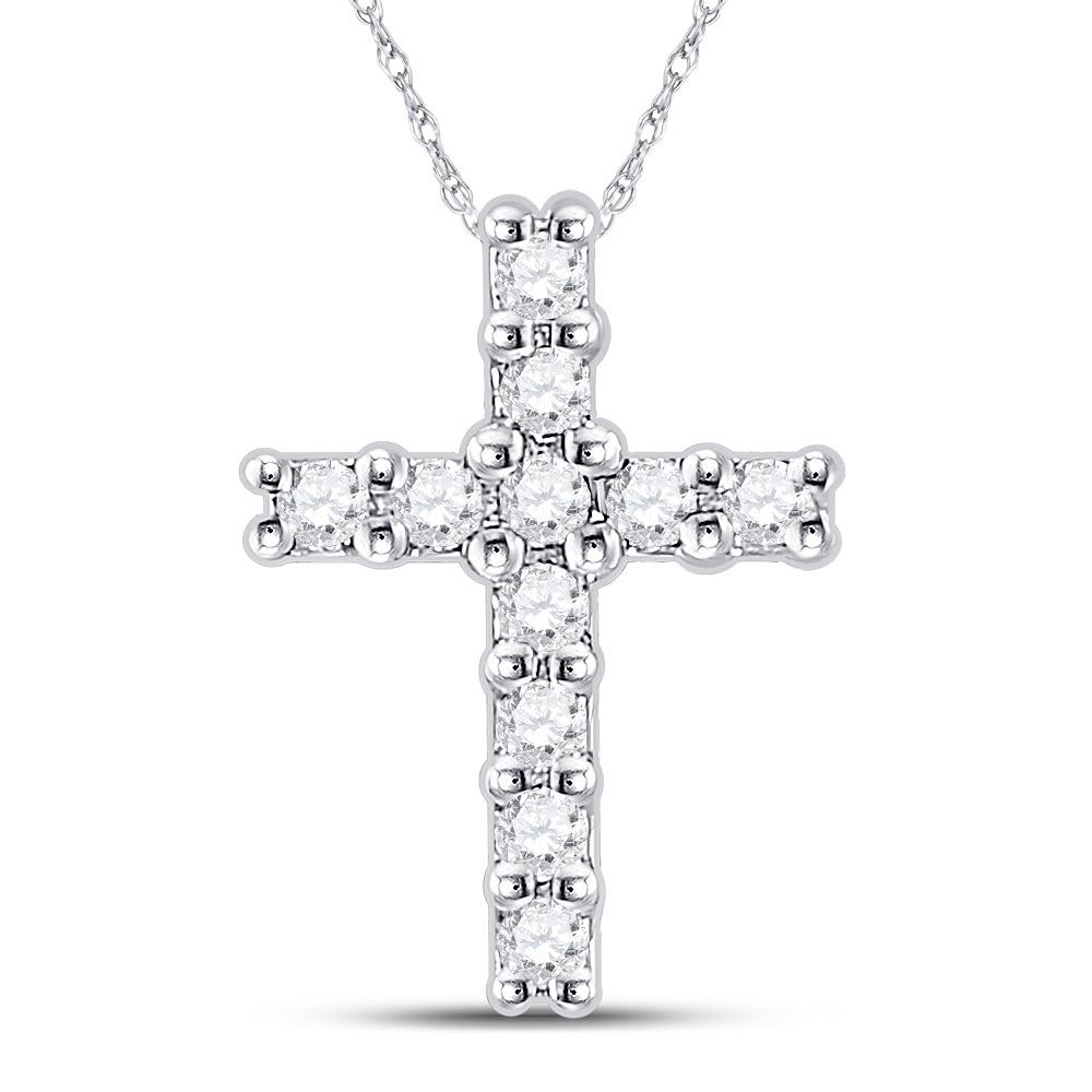10kt White Gold Womens Round Diamond Cross Pendant 1/10 Cttw.