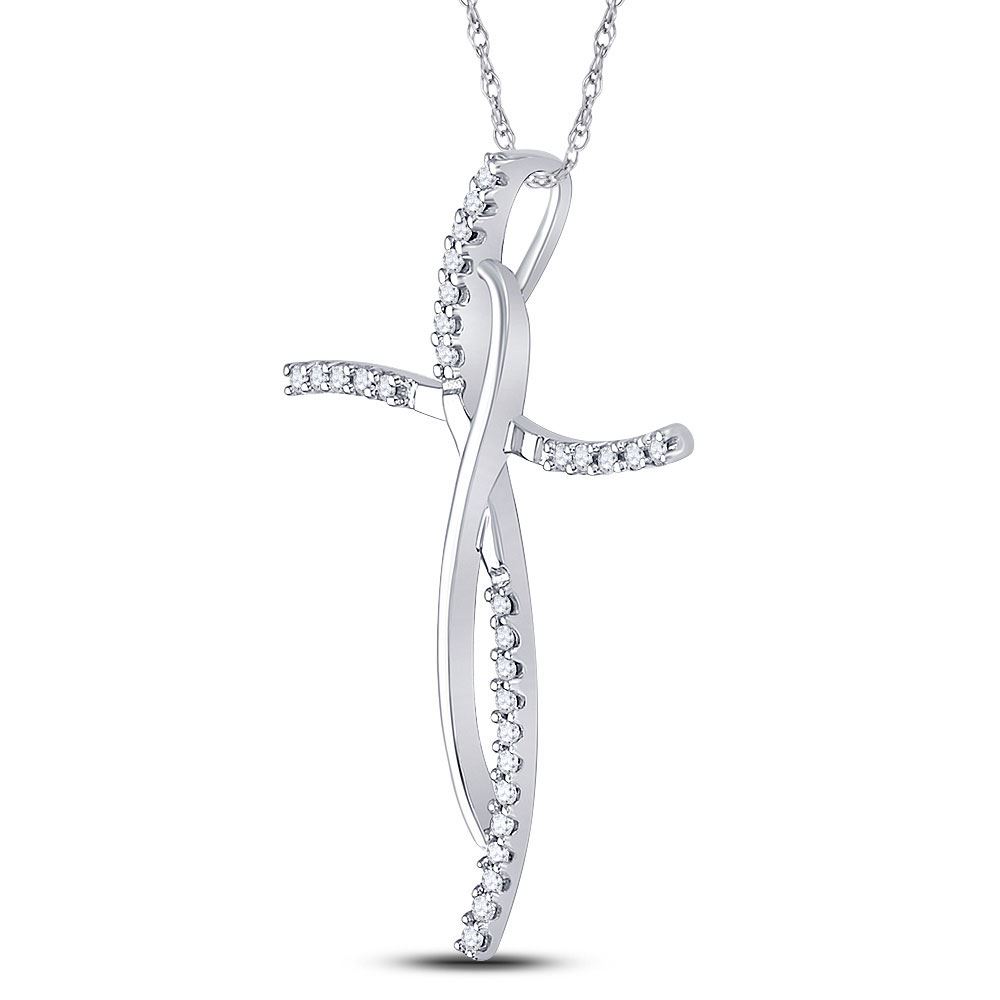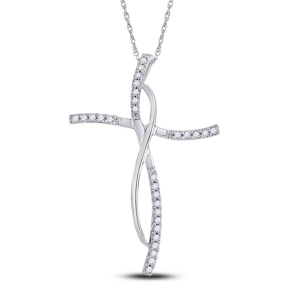 14kt White Gold Womens Round Diamond Cross Pendant 1/10 Cttw.