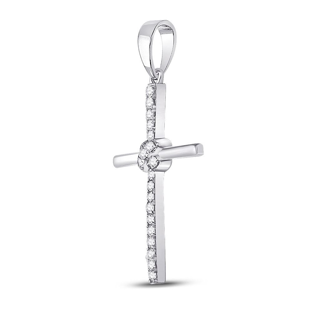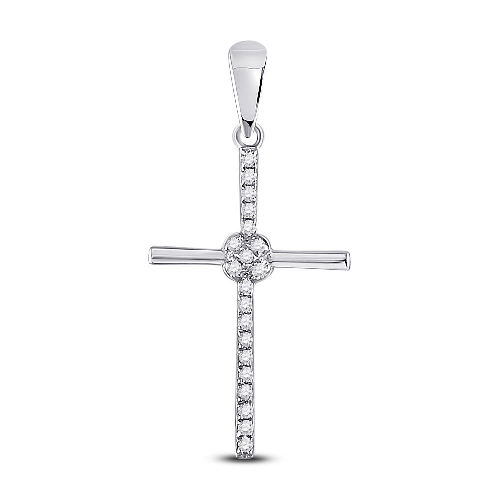 10kt White Gold Womens Round Diamond Cross Pendant 1/12 Cttw.