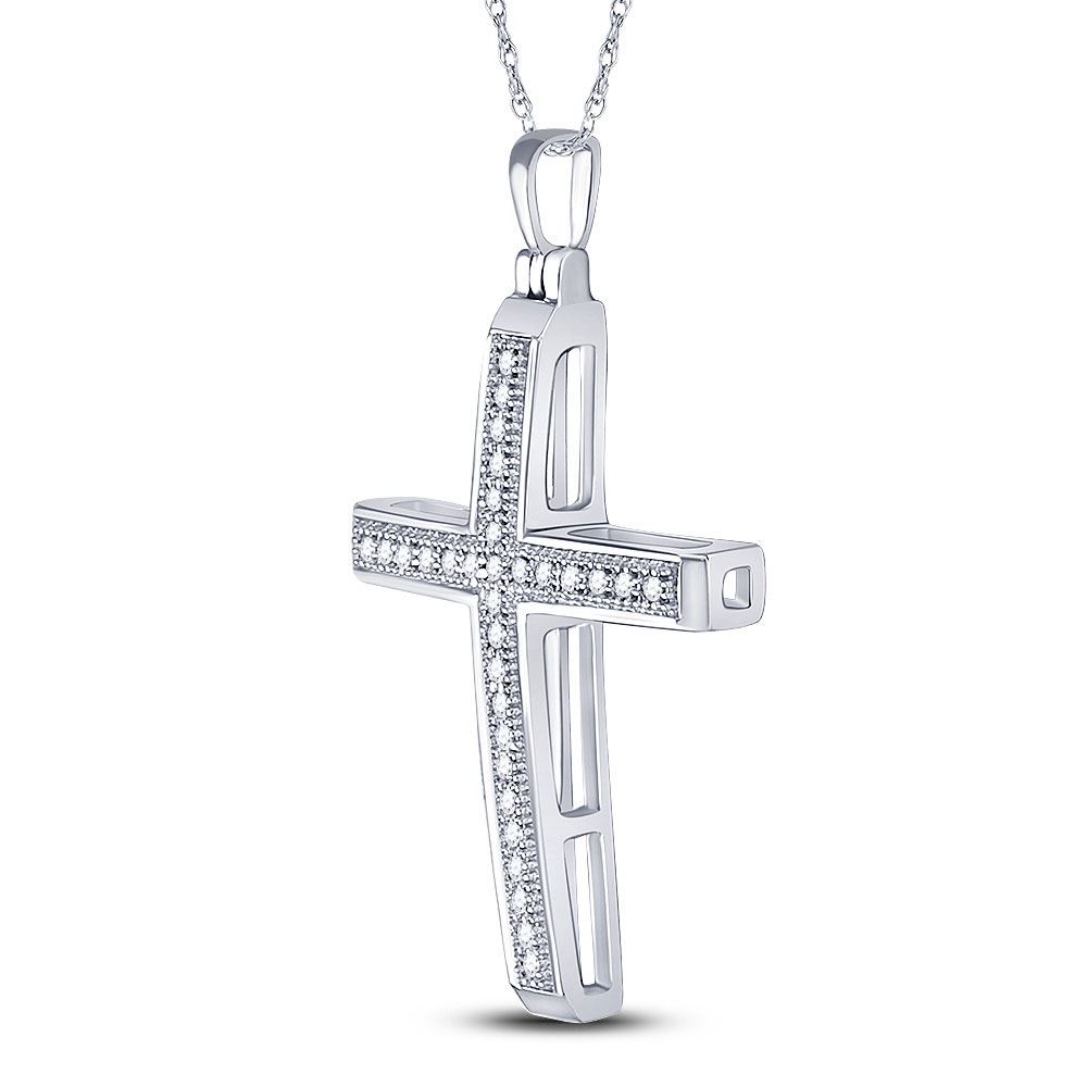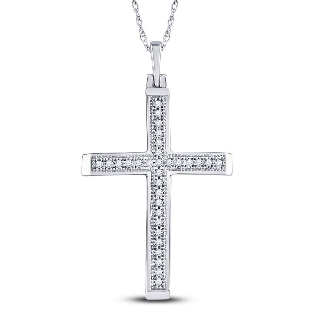 10kt White Gold Womens Round Diamond Cross Pendant 1/12 Cttw.